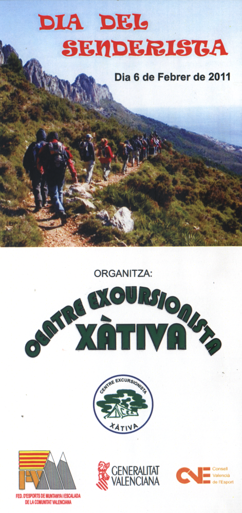 Hola muntanyers, pareix l'altre dia que es juntaren quatre amics per fundar el Centre Excursionista de Xàtiva com es coneix ara. Ja fa vint anys i pel CEX a passat molta gent, uns continúen altres ja no, pero el que importa és que enguany fem 20 anys i nosaltres continuem la mateixa tasca, amb les mateixes ganes de sempre e intentant nous reptes. Hem realitzat expedicions a l'extranger i altres activitats relacionades amb la natura, barranquisme, ferrades, piragua. Volem celebrar-lo tots junts fent el que més ens agrada, una excursió amb els amics.