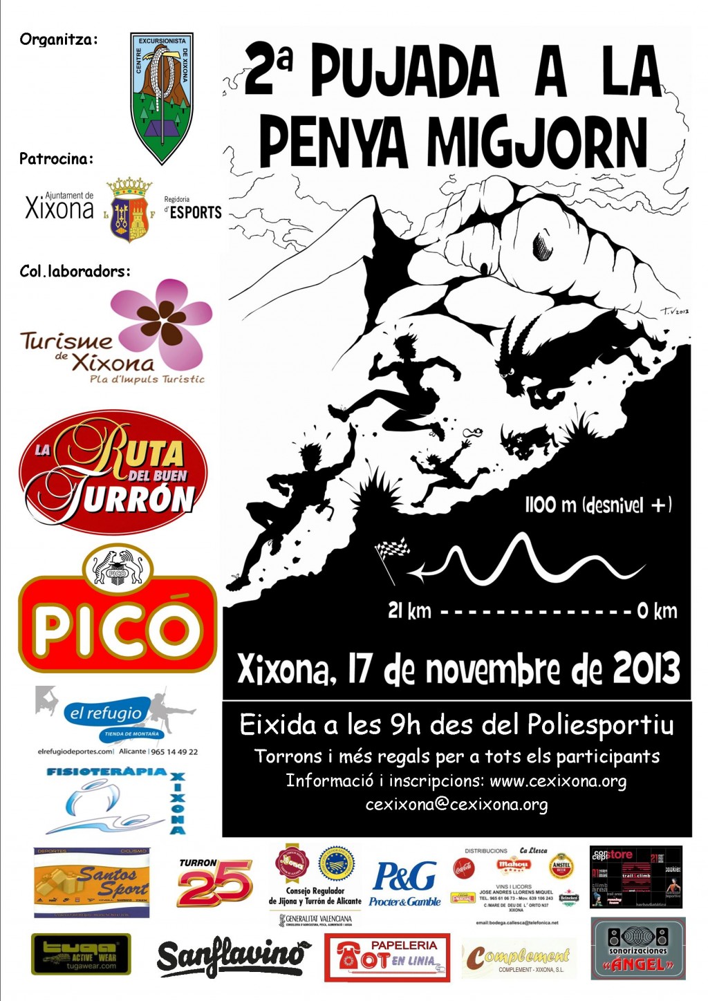 El Centro Excursionista de Xixona, tras realizar el pasado año la carrera por montaña "1a PUJADA A LA PENYA MIGJORN ", este año 2013 vamos a realizar la segunda edición.