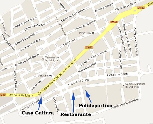 Se emperezara a las 9:00 de la Mañana desde el Polideportivo de Tavernes de la Valldigna. Sobre las 13:00 h se tiene previsto llegar al Polideportivo, donde los participantes se podrán duchar.