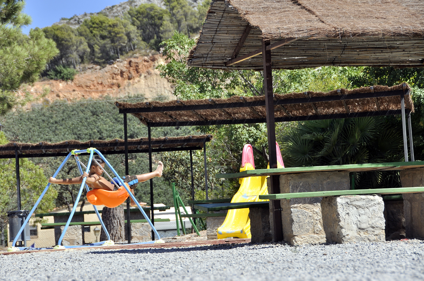 Camping situado en un paraje natural llamado les Fonts del Algar, rodeado de montañas. Camping rural con albergue para 24 pers (mínimo 6 pers) y parcelas para tiendas o caravanas, situado a 15 km de Benidorm. Con zonas para barbacoas,  àrea infantil, lavaderos, fregaderos, lavandería, duchas con agua caliente, wc químico, bar-restaurante con billar, y piscina para refrescarse.