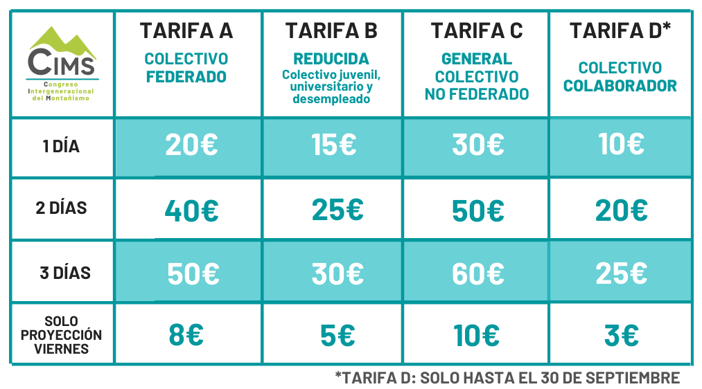 El plazo de inscripción estará abierta hasta el día 30 de septiembre (30 de septiembre para la TARIFA D.- Colectivo colaborador).
