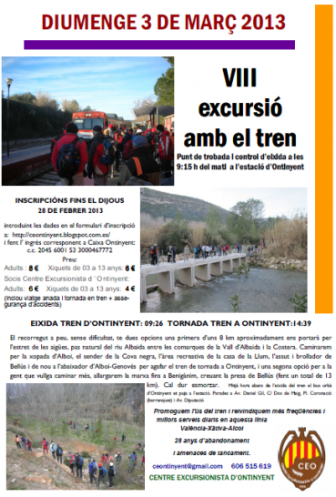 Promoguem l'ús del tren i reivindiquem més freqüències i millors serveis diaris en aquesta línia València-Xàtiva-Alcoi 28 anys d’abandonament i amenaces de tancament.