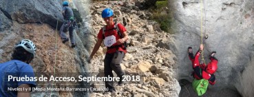 Se han realizado las pruebas de acceso de carácter específico de los Deportes de Montaña y Escalada, los días 17 al 19 de septiembre de 2018, en nivel 1 y nivel 2 en media montaña, barrancos y escalada.