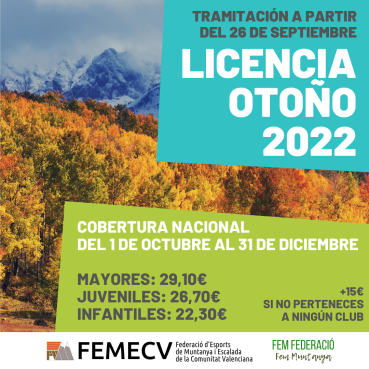Como cada año, antes de enero, se abre el plazo para la tramitación de las licencias federativas, con el fin de que la tramitación se realice de forma progresiva y que las personas que los primeros días del año realizan actividades deportivas, excursiones o competiciones, estén cubiertas por el seguro y puedan beneficiase de todas las ventajas federativas.