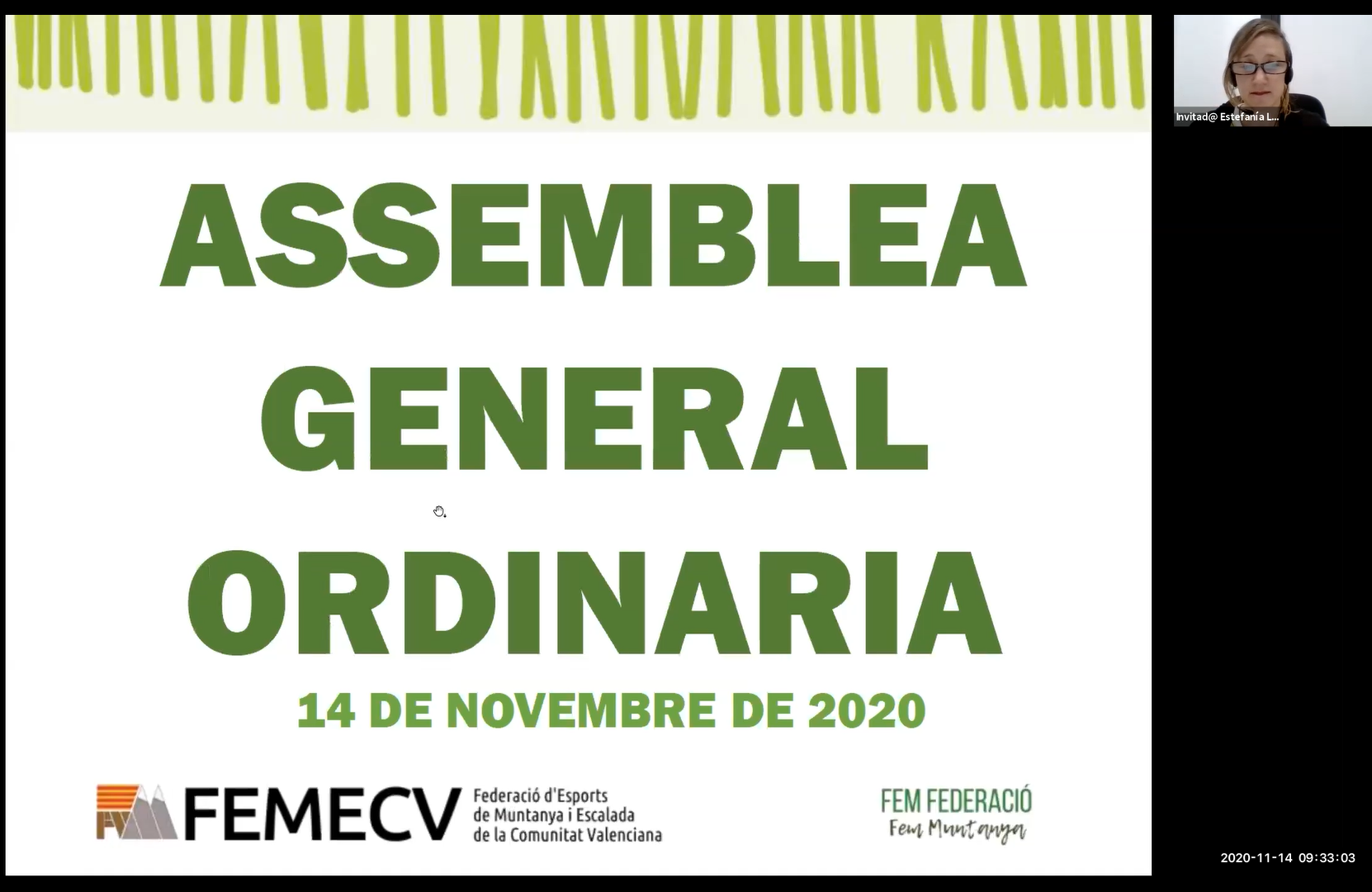 A las 9:00h del sábado se celebró la Asamblea General Ordinaria, tratándose temas importantes para la federación como: calendario y presupuestos 2021, licencias 2021 y tarifas arbitrales. A las 12.30h llegó el turno de la Asamblea General Extraordinaria, donde se presentaron las modificaciones a los Reglamentos del Comité de Árbitros, de Competiciones de Escalada y de Competiciones de Carreras por Montaña.