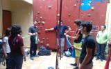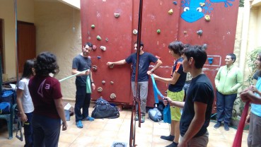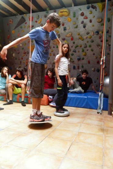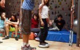 Con el fin de entrenar técnicas y habilidades con los tecnificados y a pesar de las amenazas de intensas lluvias pudimos emplear toda la mañana en estas prácticas de escalada con cuerda, que requieren destrezas especificas diferenciadas de las prácticas de escalada en bloque, una vez terminadas estas sesiones y después de comer, ya en las instalaciones cubiertas del Centro Excursionista Tavernes de la Valldigna, que amablemente nos cedió. Se realizó una sesión dirigida a refexionar sobre el enfoque que debemos darle al entrenamiento y pautas a seguir en las sesiones de entrenamiento cotidiano, abriendo el espectro de herramientas y proceso de entreno con aplicación del “TRX”, de gomas elásticas, discos de de equilibrio, etc, se trabajó también sobre bloques y se realizaron juegos para fomentar la cohesión del grupo.
