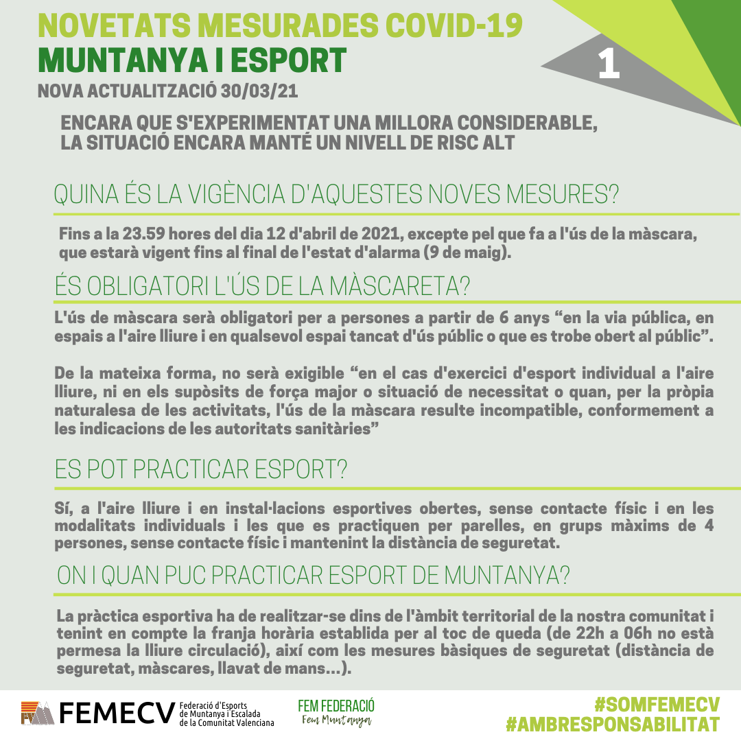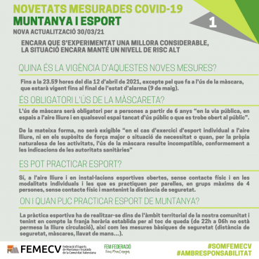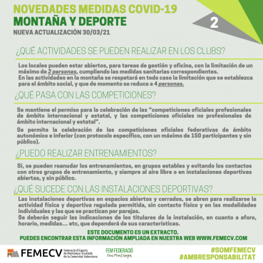 Debemos ser responsables y adaptarnos a la situación y restricciones. Desde la federación realizamos un llamamiento a Clubs, federados y federadas para cooperar con las autoridades, como ciudadanía responsable, para poder superar esta situación, aunque eso suponga no disfrutar del deporte y la montaña en grupo como lo hacíamos hasta hace poco.