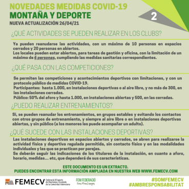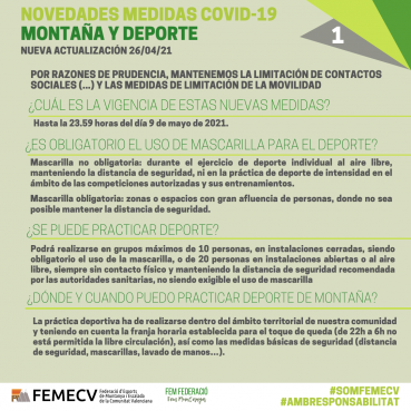 Se nos sigue pidiendo un ejercicio de responsabilidad, ejercicio que debemos realizar como deportistas, Clubs y FEMECV, y en colaboración con las autoridades. Esperamos poder disfrutar de nuestro deporte y de la montaña con mayor libertad en breve, mientras apelamos a continuar siendo responsables.