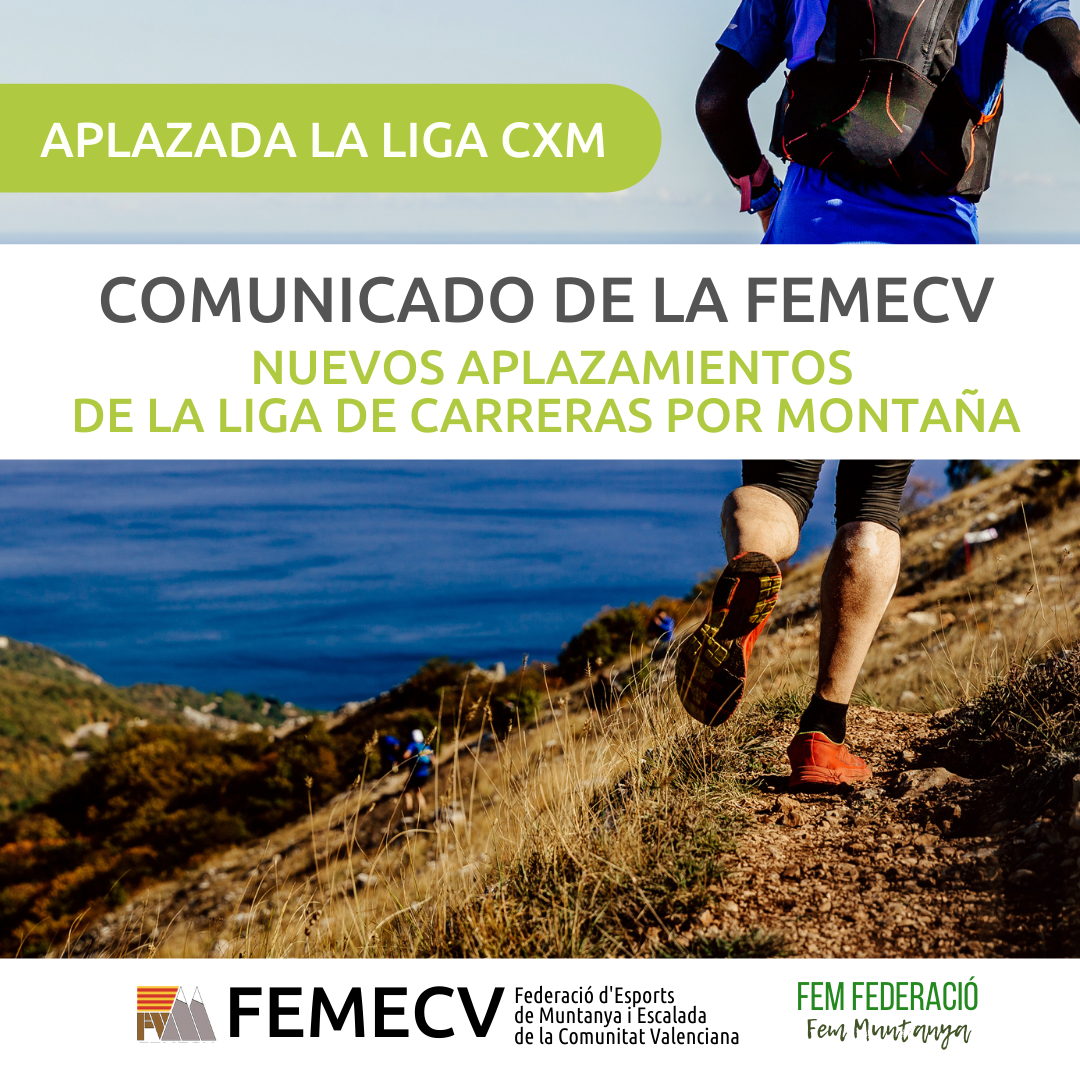 Debido al agravamiento actual de la situación sanitaria en la Comunidad Valenciana lamentamos comunicar el aplazamiento de las 2 pruebas restantes de la Liga de Carreras por Montaña de la FEMECV que se debían celebrar en Crevillent y Genovés el 14 y el 28 de Febrero respectivamente. Esto supone el aplazamiento total de la Liga.