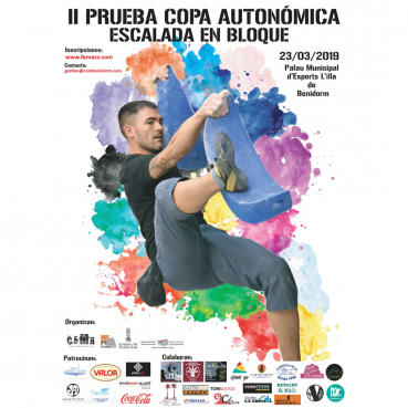 El pasado sábado 23 de marzo tuvo lugar la segunda prueba de la Copa de Escalada de bloque de la Comunidad Valenciana en el Pabellón de deportes Pabellón Liliana Steiner de Benidorm, Alicante con más de 120 inscritos entre las diferentes categorías infantiles, juveniles y absolutas.