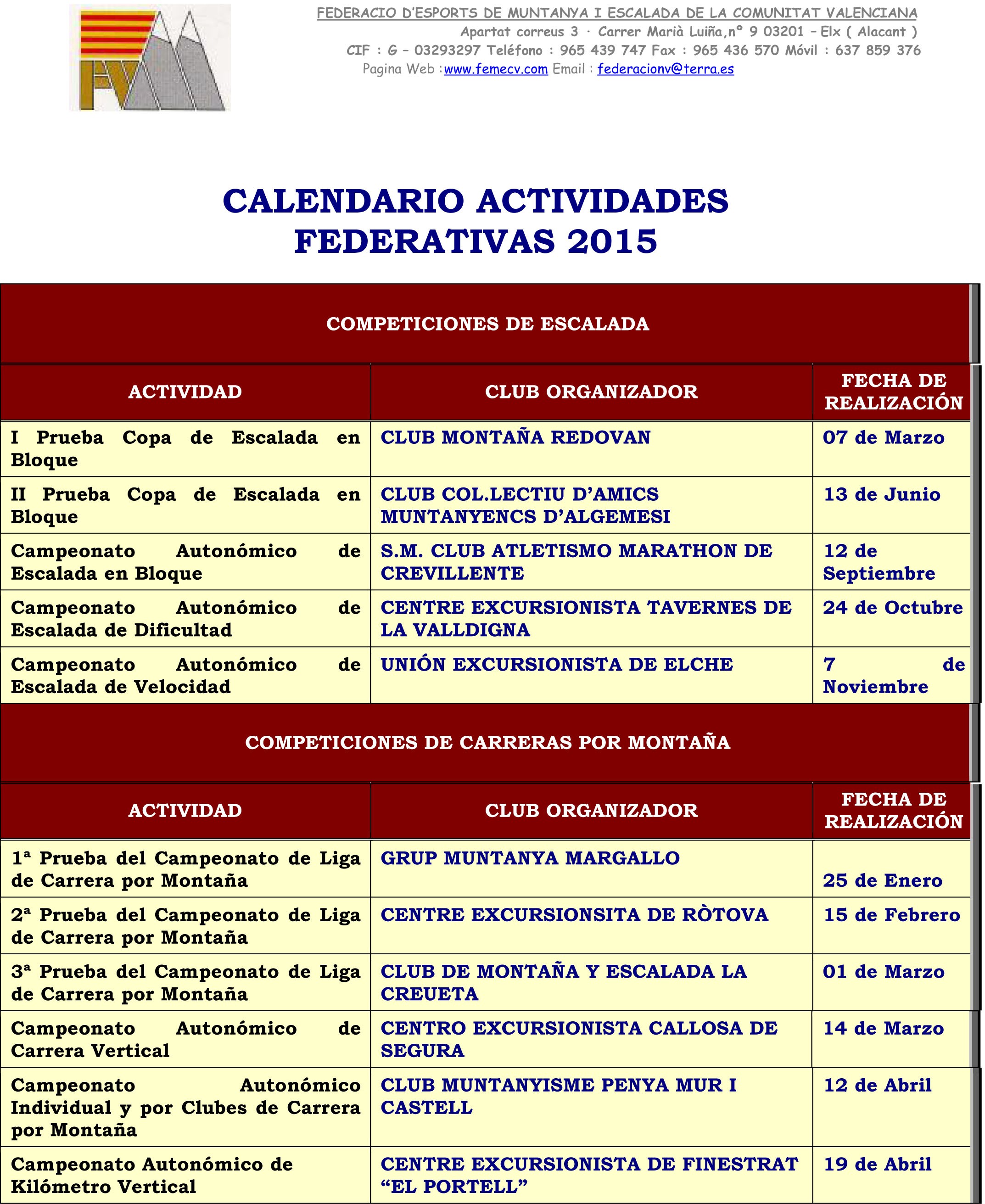 Debido a las pruebas estatales hemos tenido que cambiar una fecha del calendario, siendo esta la del Campeonato Autonómico de Kilómetro Vertical y hemos añadido una prueba más de escalada en bloque.