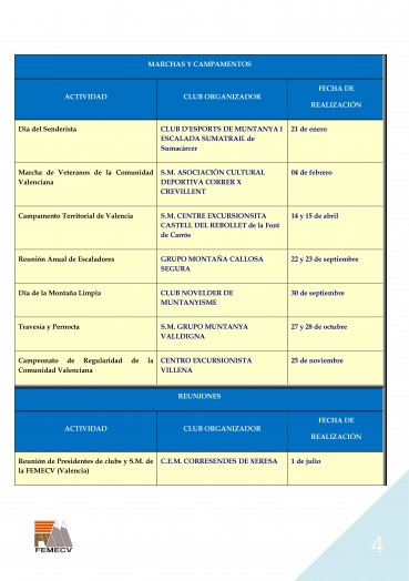 CALENDARIO DE ACTIVIDADES 2018