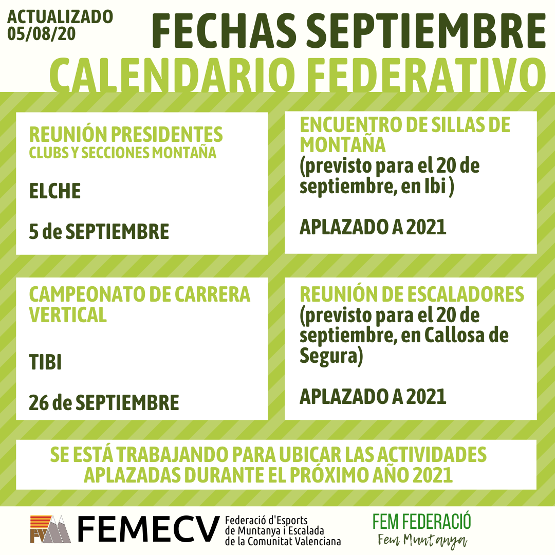 Aunque muchos confiábamos que en los meses más calurosos del año, el COVID-19 nos daría una tregua, no ha sido así y las actividades previstas o aplazadas para septiembre se resienten de ello.