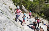 Se realizaron unas ponencias en el Teatro Rio de Ibi, donde primero Araceli López nos explicó al detalle su experiencia como madre de tres hijos, que junto a su marido, no dejaron de disfrutar de su afición a la montaña e inculcaron a sus hijos a realizar montañismo, escalada y barrancos en familia. Maravillosa demostración de poder motivar a unos pequeños, desde corta edad, a través de la imaginación y la formación práctica y segura. La segunda ponencia, Ana Torregrosa, joven promesa del equipo de la selección de escalada de la FEMECV, nos explicó sus inicios a la escalada desde la infancia hasta llegar a formar parte del equipo técnico y seguir superándose día a día para conseguir futuros y exitosos resultados a nivel autonómico y nacional.