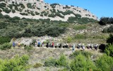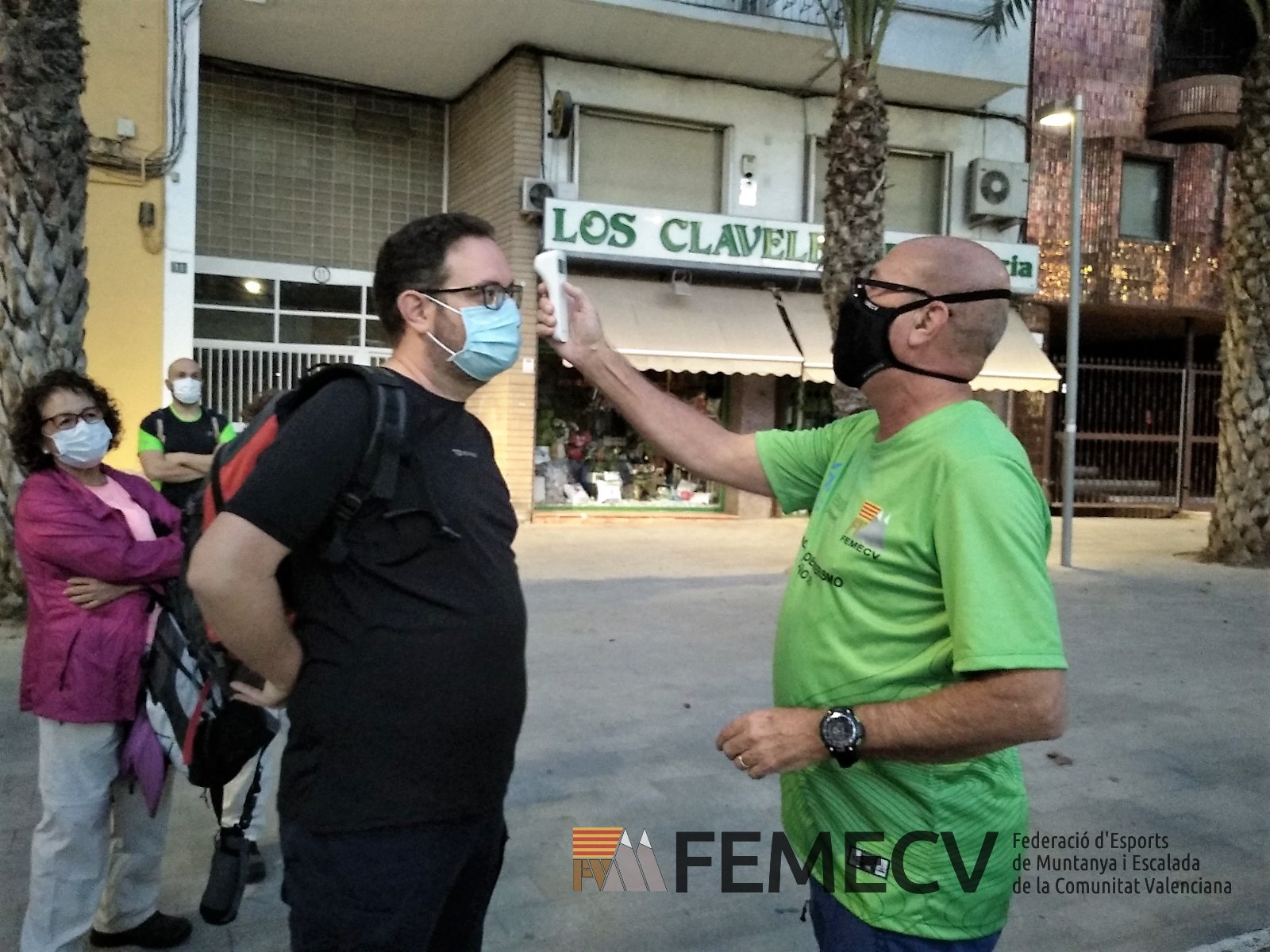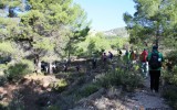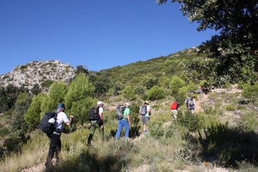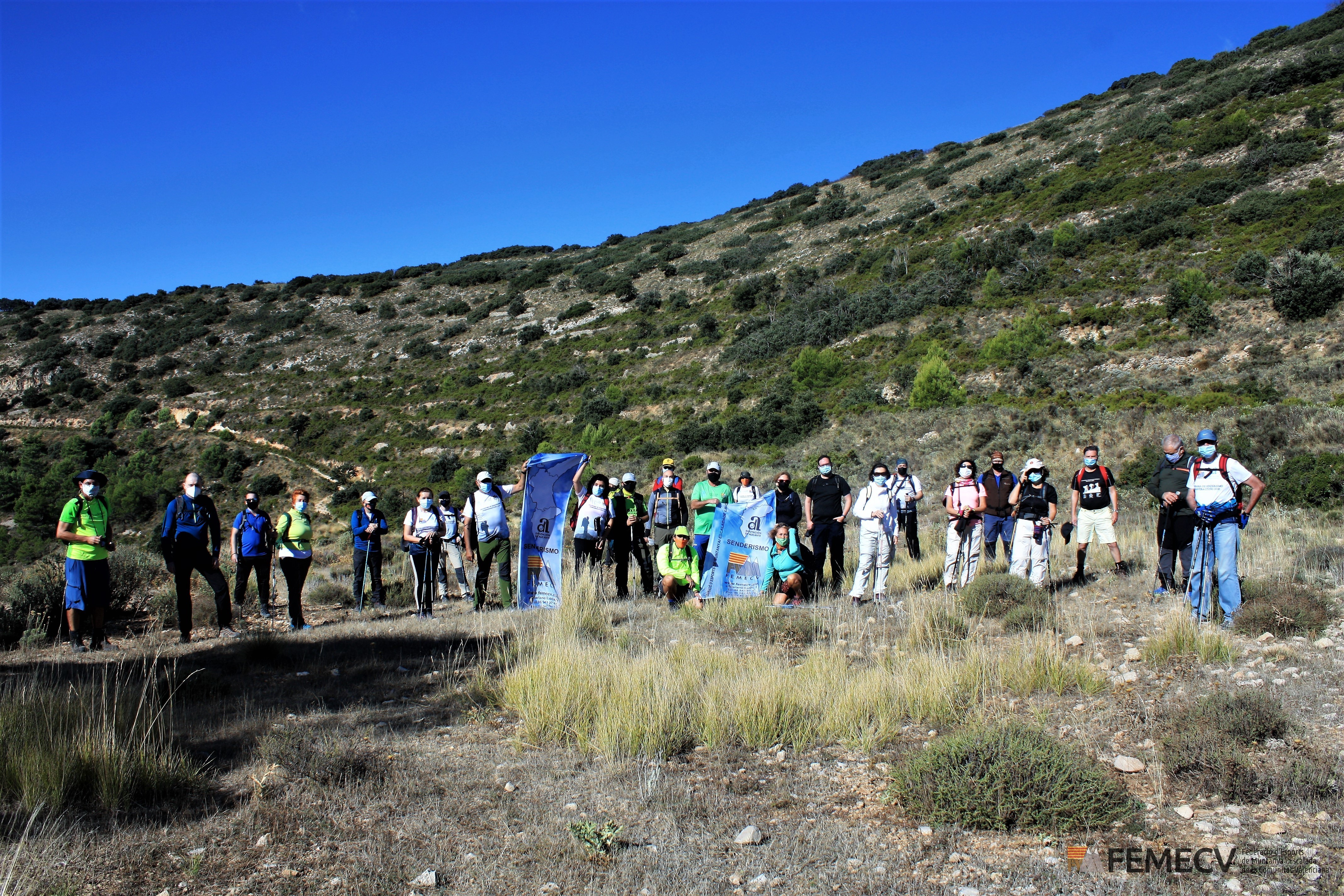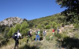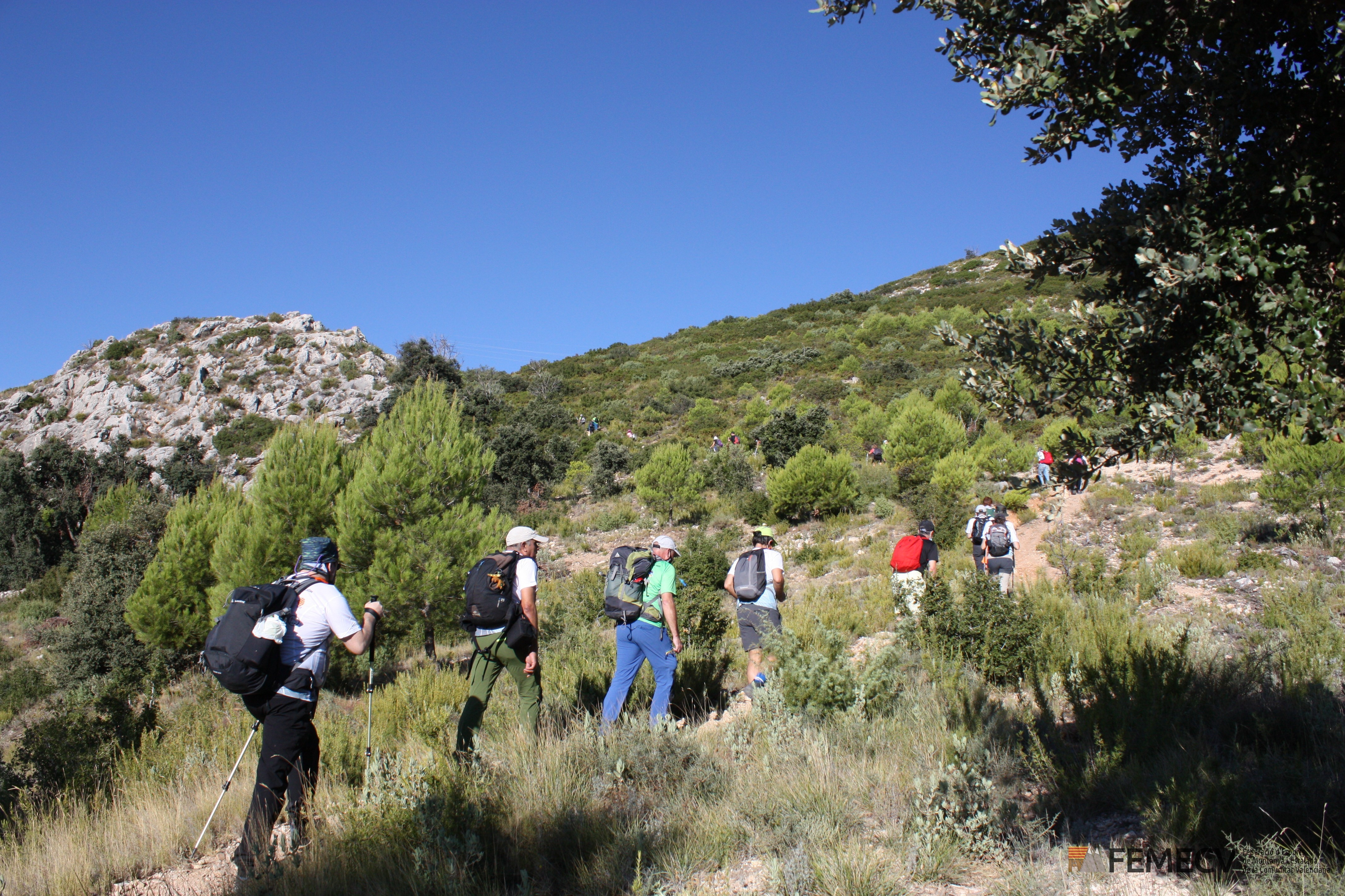 A las 9:00 los participantes iniciaron la ruta con un día soleado, pero ventoso, desde el parque municipal de Torremanzanas siguiendo el GR 330 y el PR- CV 232 en dirección N hasta llegar al paraje de la Canaleta, desviándose en ascenso por el barranco del Rentonar, teniendo de frente la costera de la Mare de Deu y la cima del Els Plans con unas vistas espectaculares: Puig Campana, Cabeço, Aitana y el Mediterráneo,