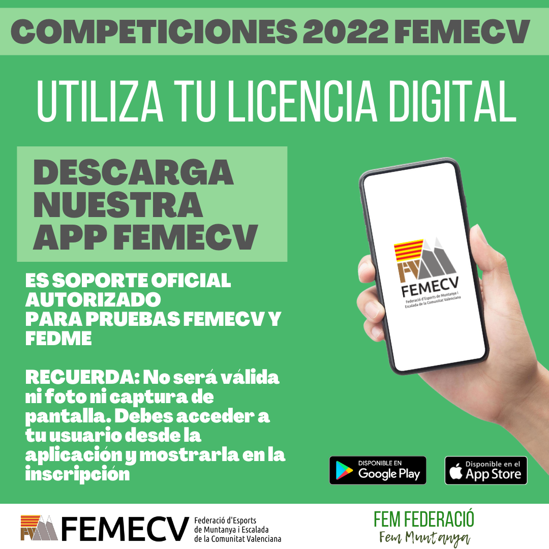 Desde la puesta en marcha de nuestra App FEMECV, la licencia digital está disponible en nuestros móviles, facilitando así su utilización. Resultará muy útil en las pruebas de competición, donde se podrá presentar como alternativa a la tarjeta federativa.