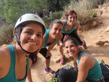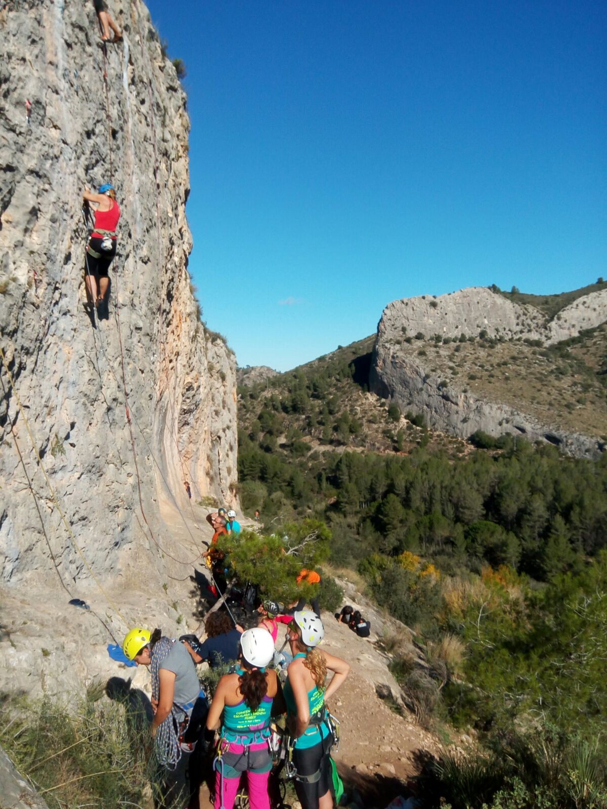 A primera hora del sábado fueron llegando el resto de chicas. Sobre las 10 de la mañana, se repartieron las camisetas y se hizo una pequeña presentación, en la que agradecimos la colaboración de todos los que habían hecho posible el evento e Ismael y Ramonet nos anunciaron la inminente publicación de la Guía de Escalada de la zona de la Costera. Destacar, la agradable e inesperada visita de Amador Pérez, miembro del GREIM de Ontinyent.