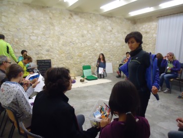 Sobre las 5 de la tarde, una tormenta nos hizo recoger trastos, lo que aprovechamos para tomarnos algo fresco y desplazarnos hasta el Aula de Natura de Canals, dónde continuaron las actividades y pasamos la noche, gracias al Ayuntamiento de Canals.