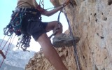 La mañana, que es cuando más pegaba el sol en la pared, la dedicamos a ver todos los aspectos teóricos del curso, material de progresión (estribos, daisy-chain y fifi) métodos y técnicas de progresión, anclajes fijos y material flotante. Hicimos un taller de clavar clavos donde vimos los tipos de clavos, el posicionamiento, como se falcan los clavos y como se extraen de la pared, donde todos pudieron practicar con estos anclajes.