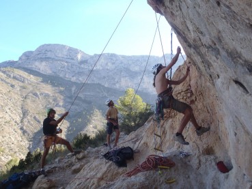 Cenamos y dormimos en la “Casa de Dios”, un poco más arriba de donde se encuentra el sector de escalada y donde se aparca para ir a escalar a la pared del Eco. Y a la mañana siguiente después de hacer un poco de tiempo para encontrar la pared menos soleada, seguimos probando y aprendiendo con las prácticas. Tanto los que se iniciaban en el mundo del artificial como los que ya conocían estas artes, tuvieron la oportunidad de aprender y limar conceptos que les servirán en futuras ascensiones, así como motivarse con una actividad tan socorrida para nuestras escaladas.