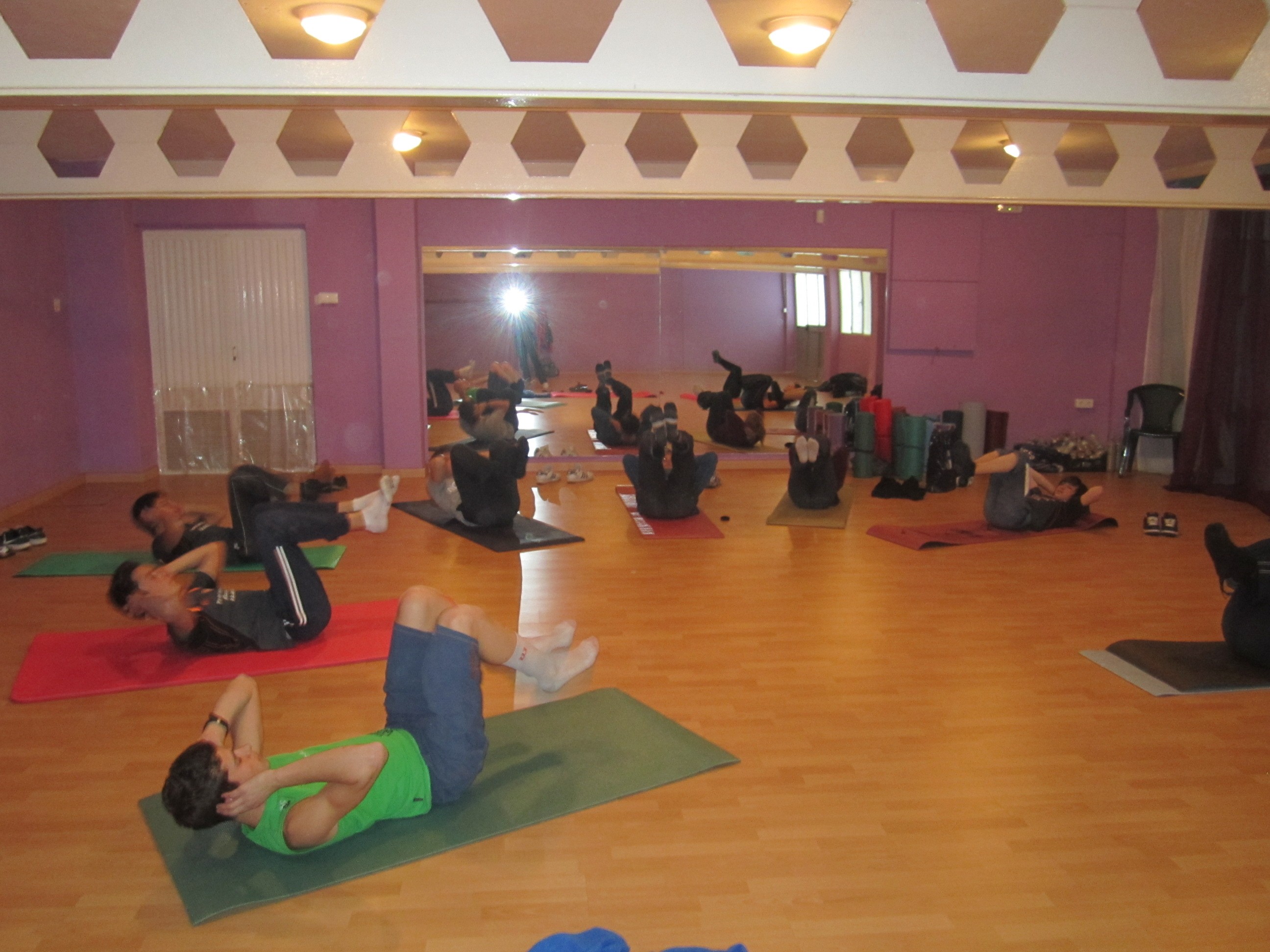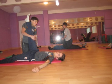Para acabar la concentración los tecnificados realizaron una sesión de abdominales y lumbares y otra de estiramientos por parejas dirigida por Noel Blasco.