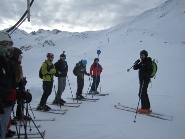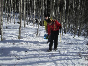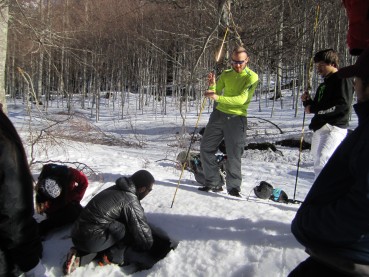 Para el domingo y con la experiencia de años anteriores en que se alquilan los equipos de travesía para esquiar muy poco, decidimos no alquilar y guardarnos un comodín para otra salida, y así aprovechar más a esquiar. Este día lo dedicamos a practicar lo visto la tarde anterior de rescate de víctimas de avalancha. Escondimos ARVAS y nos dedicamos a practicar la búsqueda, sondeamos probando el tacto de los diferentes materiales que nos podemos encontrar en una búsqueda con sonda y nos dimos un agradable paseo.