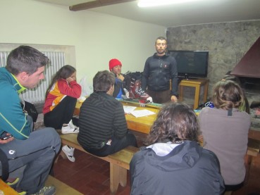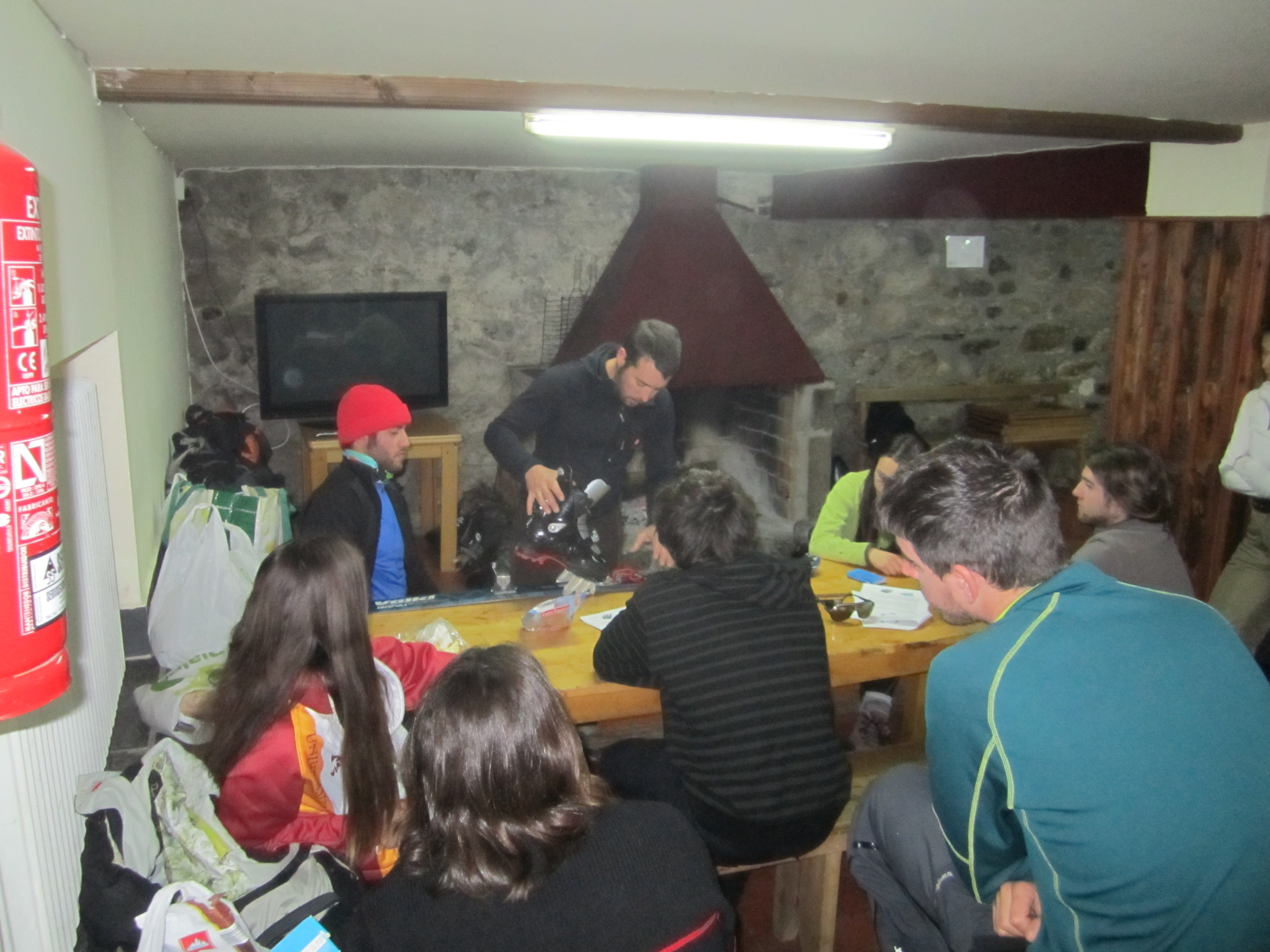 Por la tarde de vuelta al refugio, duchados y al calor del fuego vimos teoría de material, técnica y sobretodo medidas de seguridad y rescate de víctimas de avalancha. Despidiendo el día con una buena cena en el refugio.