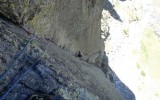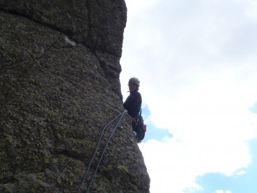 El domingo con el cuerpo cansado del viaje, la aproximación y las escaladas del sábado decidimos escalar todos en la punta María Luisa, ya que su modesta altura (170m) nos permitiría salir medianamente pronto, aun así en las vías elegidas hubo que apretar un buen rato entre diedros incómodos y fisuras de gran calidad, las vías elegidas fueron “Gran Diedro o Ayuso-Espías” para los que no lo habían escalado el día anterior y “Vas que chutas” para la otra cordada, nos reunimos todos en la cumbre de la aguja y rapelamos juntos hacia las mochilas y de allí camino al coche.