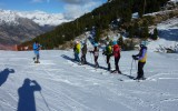 Al día siguiente, el grupo mantuvo los mismos 4 grupos para seguir trabajando el esquí de descenso con mayor soltura y sobre un terreno de mayor dificultad y pendiente. Lo que se palpó fue el cambio y la mejora del dominio sobre los esquís con tan solo 9 horas de trabajo de mejora técnica acumulado durante el fin de semana por cada grupo.