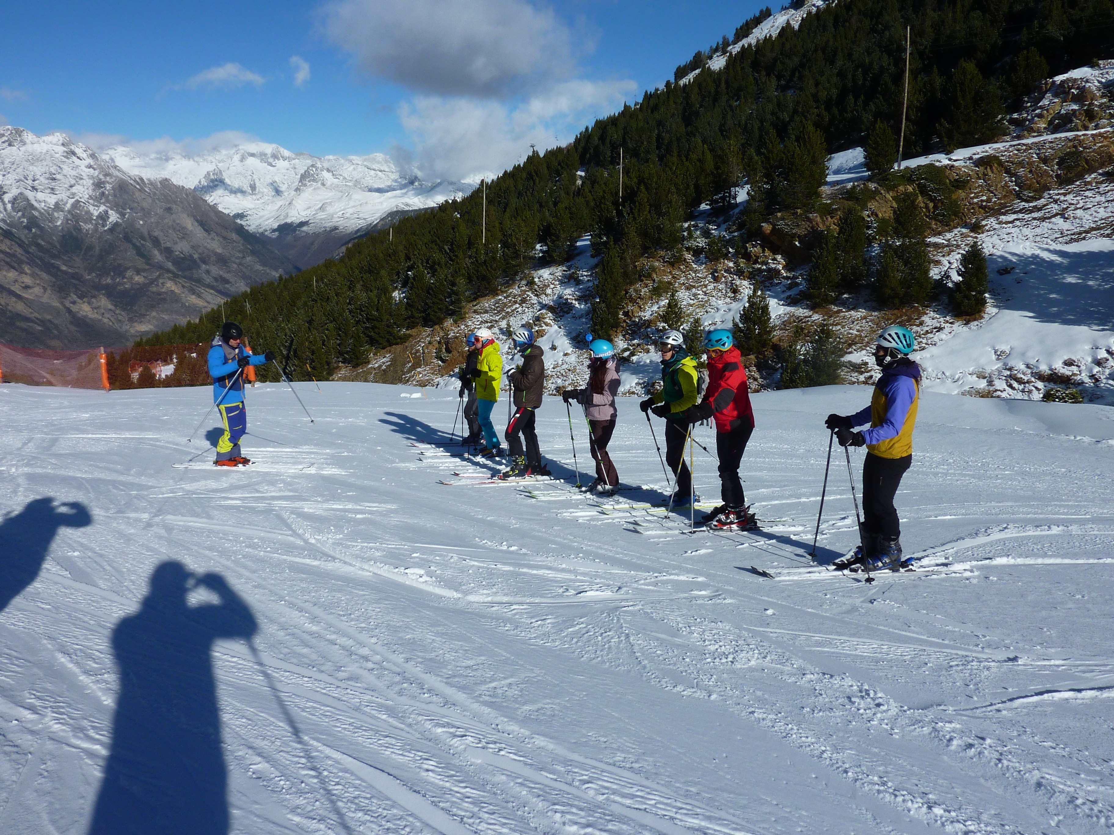 El último día lo dedicamos a la técnica de ascenso en esquís de montaña subiendo hasta el Gallinero, cumbre principal de la estación de Cerler. Nos acompaño la nieve durante toda la actividad.
