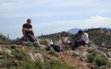 Desde el collado del Pouet volvimos sobre nuestros pasos por el PR-CV 17 hasta el collado del Llamp, maravillosas vistas sobre el valle de Sella, los Castellets, Aitana y las paredes del Cabal. Y en otro rato llegamos a la cumbre del Ponoig, donde el viento nos impidió parar a comer y seguir tomando mediciones y referencias, con lo que volvimos al collado del Llamp para hacer la parada más larga del día.