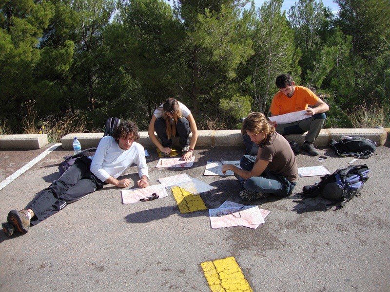 Como la predicción meteorológica indicaba que el sábado iba a ser el mejor de los dos días del fin de semana, invertimos el orden del curso, dedicamos este día a dar un buen paseo por la sierra dedicándolo a ver las partes más practicas, interpretación del plano, toma de rumbos e itinerarios y establecimiento de posiciones, tanto de elementos en el mapa como la nuestra dentro de este mediante triangulaciones.