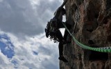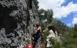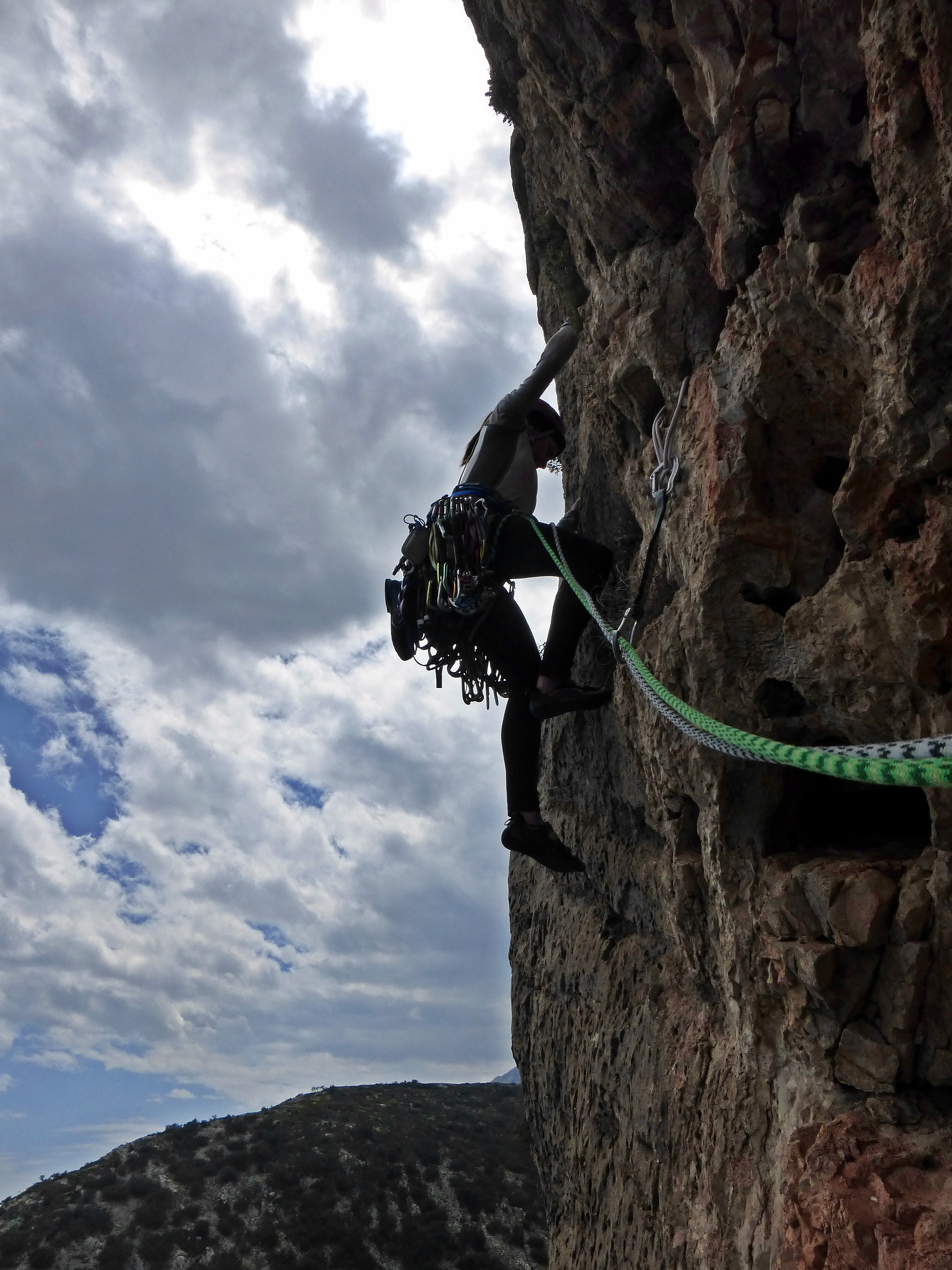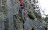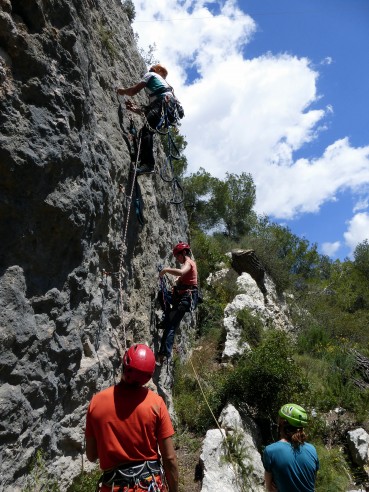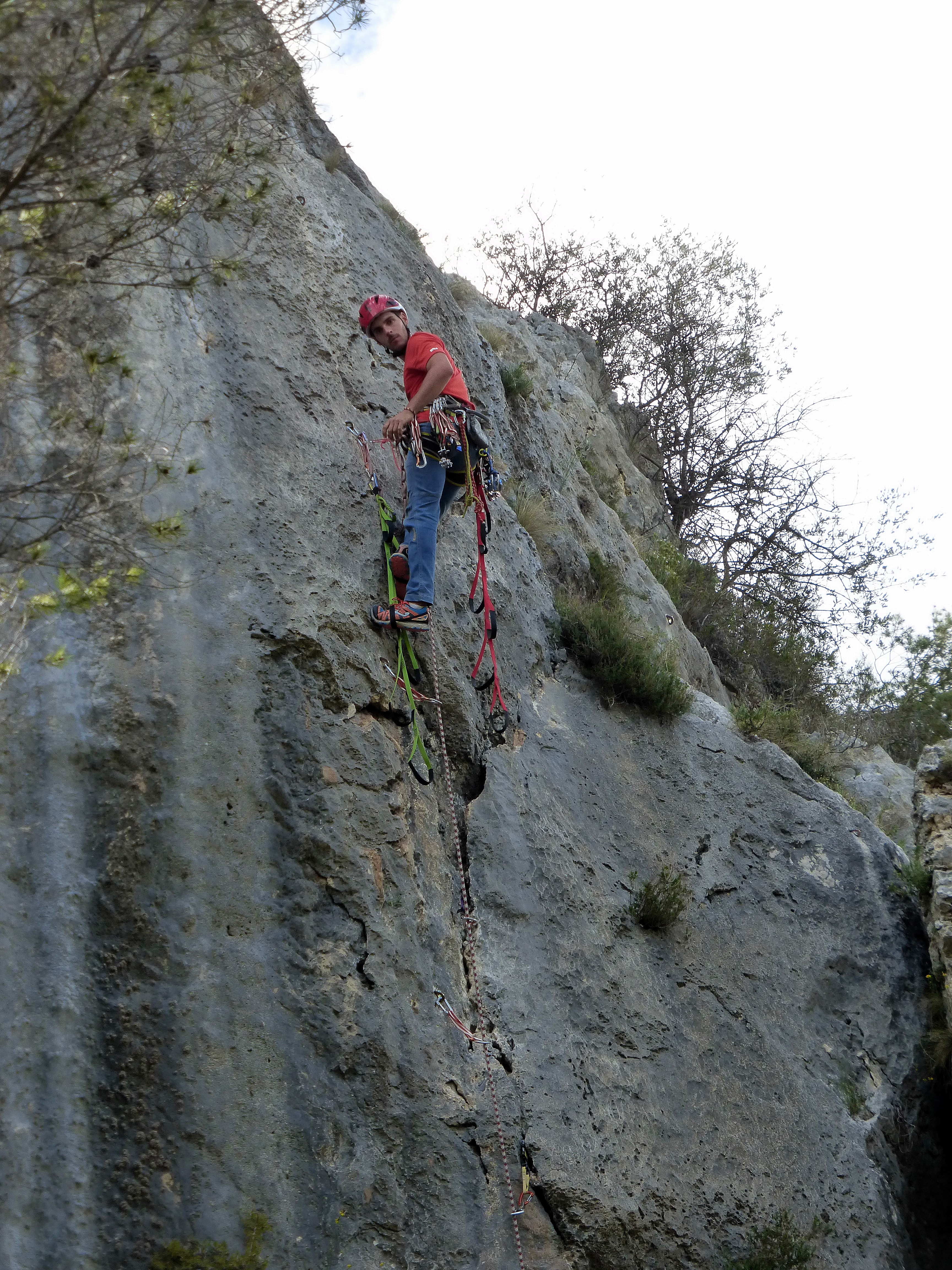 Una vez vistas las técnicas de progresión sobre parabolts buscamos rutas en las que se pudiera usar material flotante y seguimos practicando unos y otros aprovecharon para escalar un poco de deportiva en las vías vecinas.