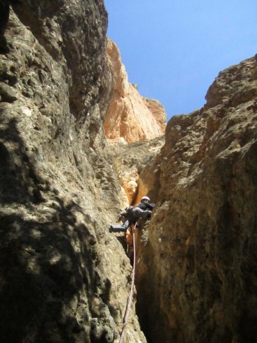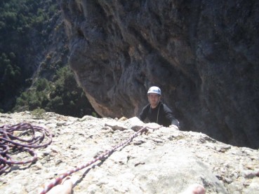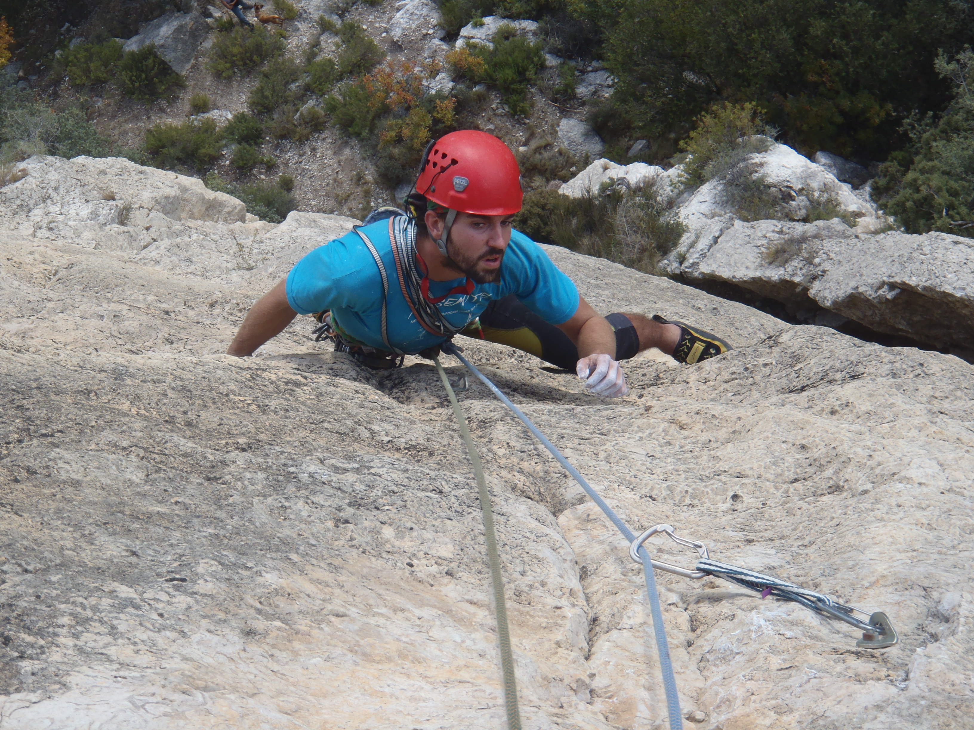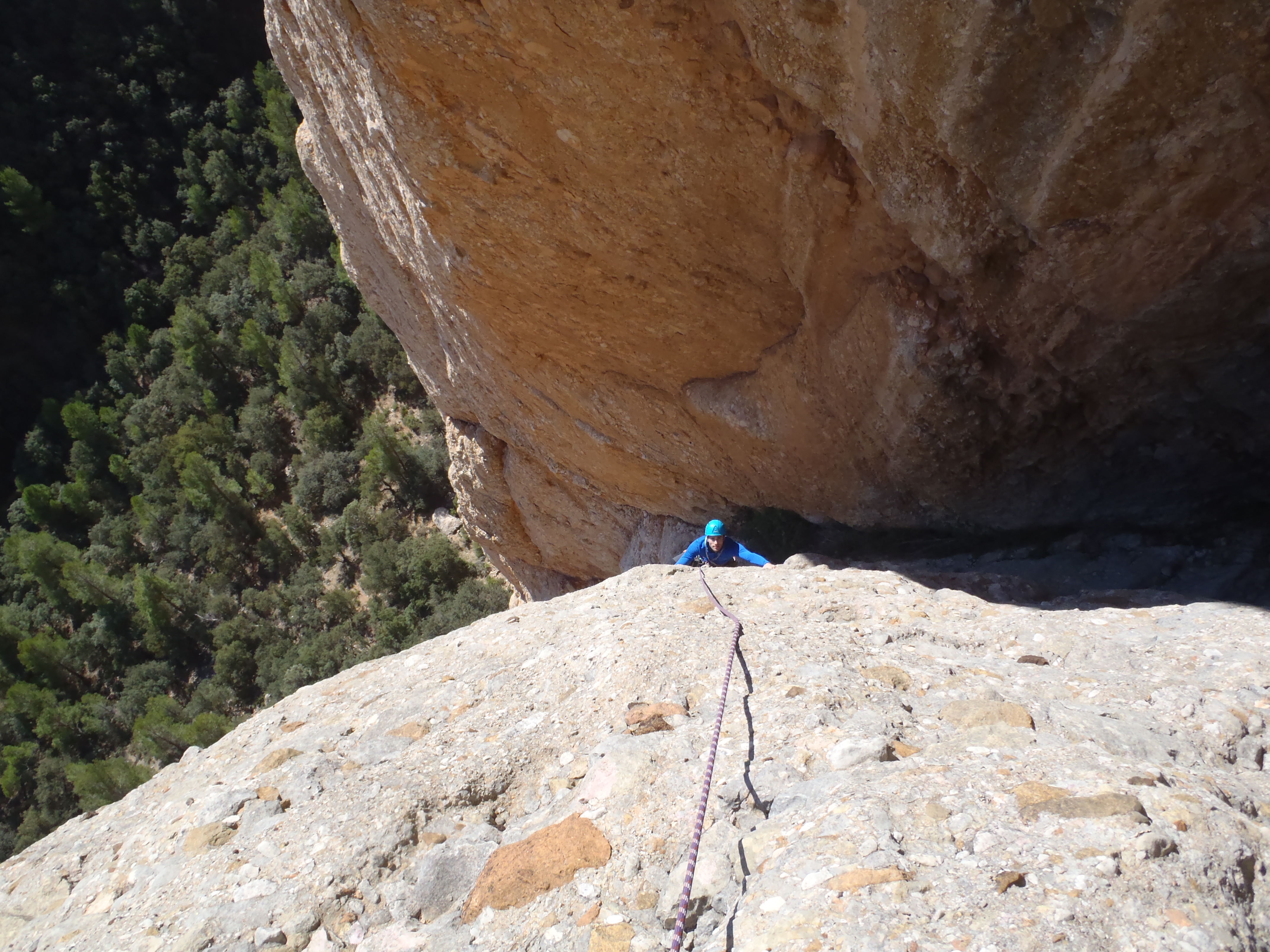 El sábado fuimos a la zona de escalada de Roques de Masmut, en la localidad turolense de Peñaroya de Tastavins, donde escalamos las siguientes vías semiequipadas: