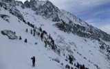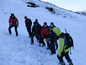 Al día siguiente nos dedicamos a ver todo lo relacionado con el material de esquí de montaña y desde el mismo aparcamiento de la estación salimos con los esquís para ver las técnicas de ascenso. Prácticas de deslizamiento, vueltas maría, etc… Este día lo aprovechamos para resolver dudas de la práctica de búsqueda con el DVA. Nos dimos un buen paseo por un valle cercano a la estación bajamos a los coches y despedimos la concentración con muy buenas sensaciones, un par de días acompañados de un buen anticiclón que nos dejó días despejados y buenas temperaturas.