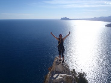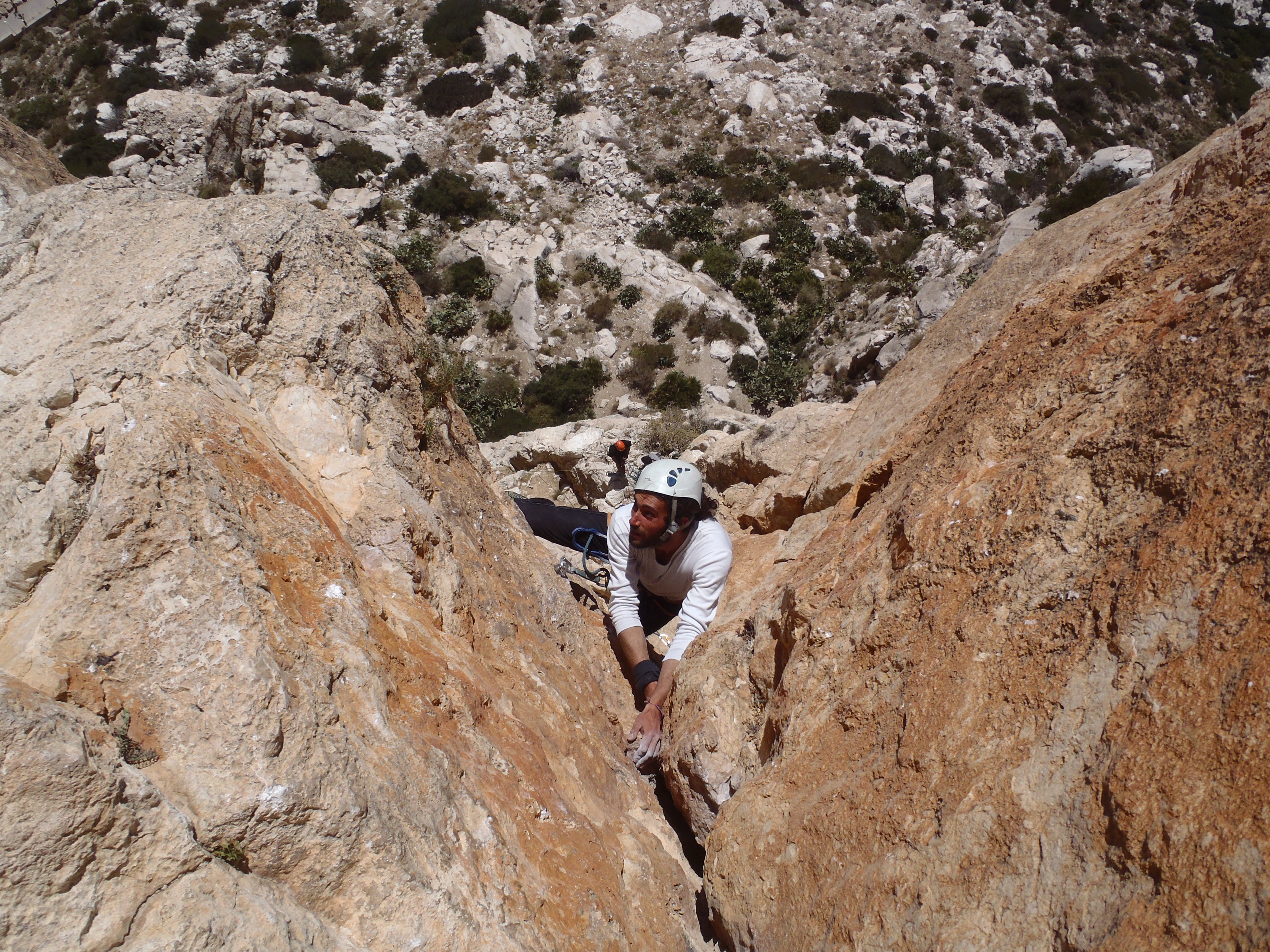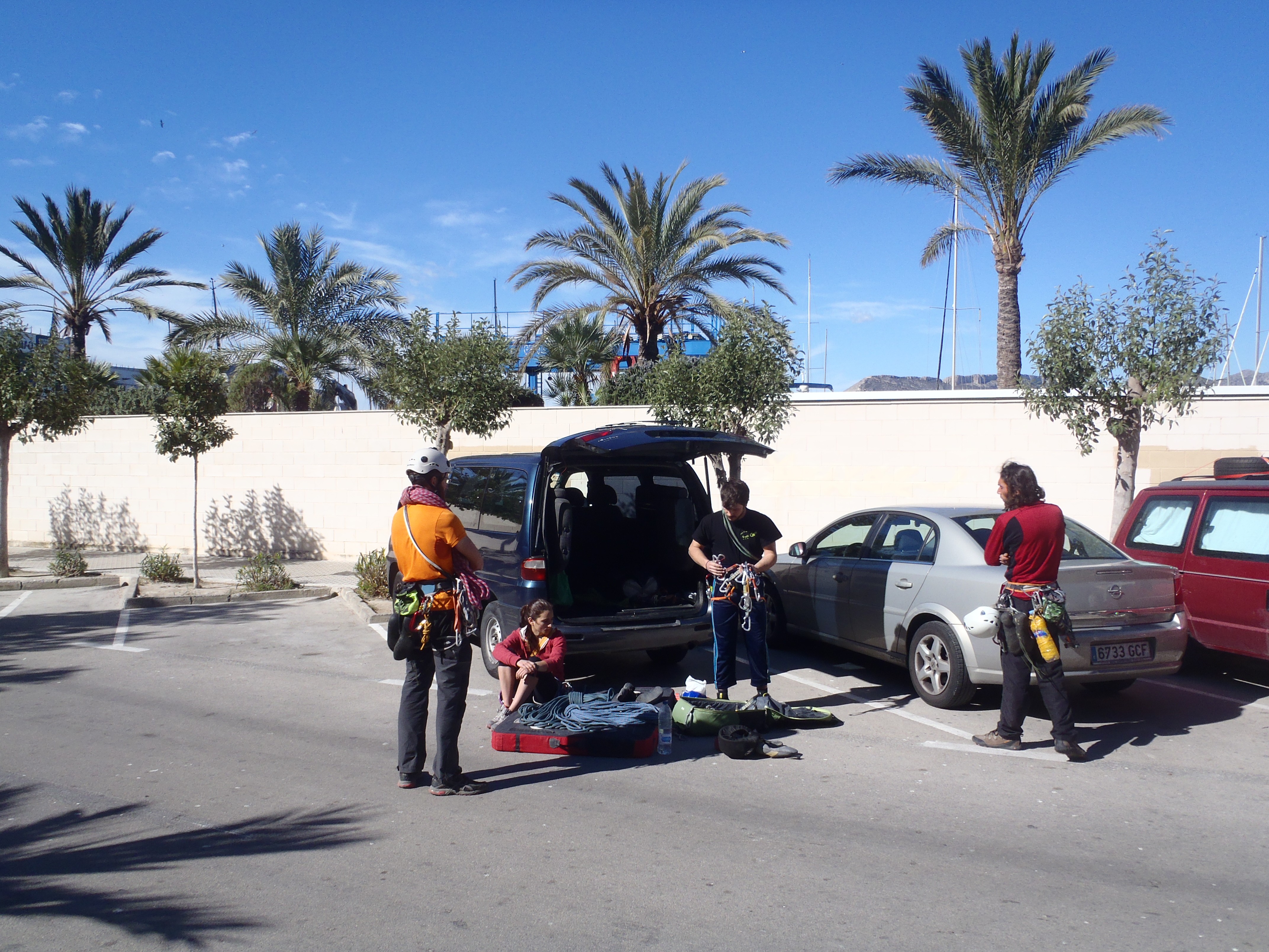 Dormimos en el mismo aparcamiento del Ponoig y a la mañana siguiente después de desayunar nos vamos a Calpe. Hoy iremos todos juntos al diedro UBSA del Penyal, toca repaso de maniobras y esta es una buena ruta para hacerlo. Entre explicaciones va pasando el día y por la tarde llegamos a la cumbre de esta bonita roca y bajamos fijándonos en las vías de la norte haciendo planes para la próxima visita a Calpe. Un buen día de risas con todos los asistentes haciendo trenecito en la pared.