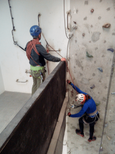 El sábado, en la sede de la UEE, se trabajó todo lo relacionado con la conducción de clientes, encordamiento del guía y de los clientes (con sus diferentes métodos y número de clientes), trabajo con potencias (fijas y móviles), conducción de clientes con cuerda en diferentes situaciones y contextos. Las instalaciones y la protección que ofrecía, permitieron trabajar hasta las tantas de la tarde y resolver dudas a cada momento.