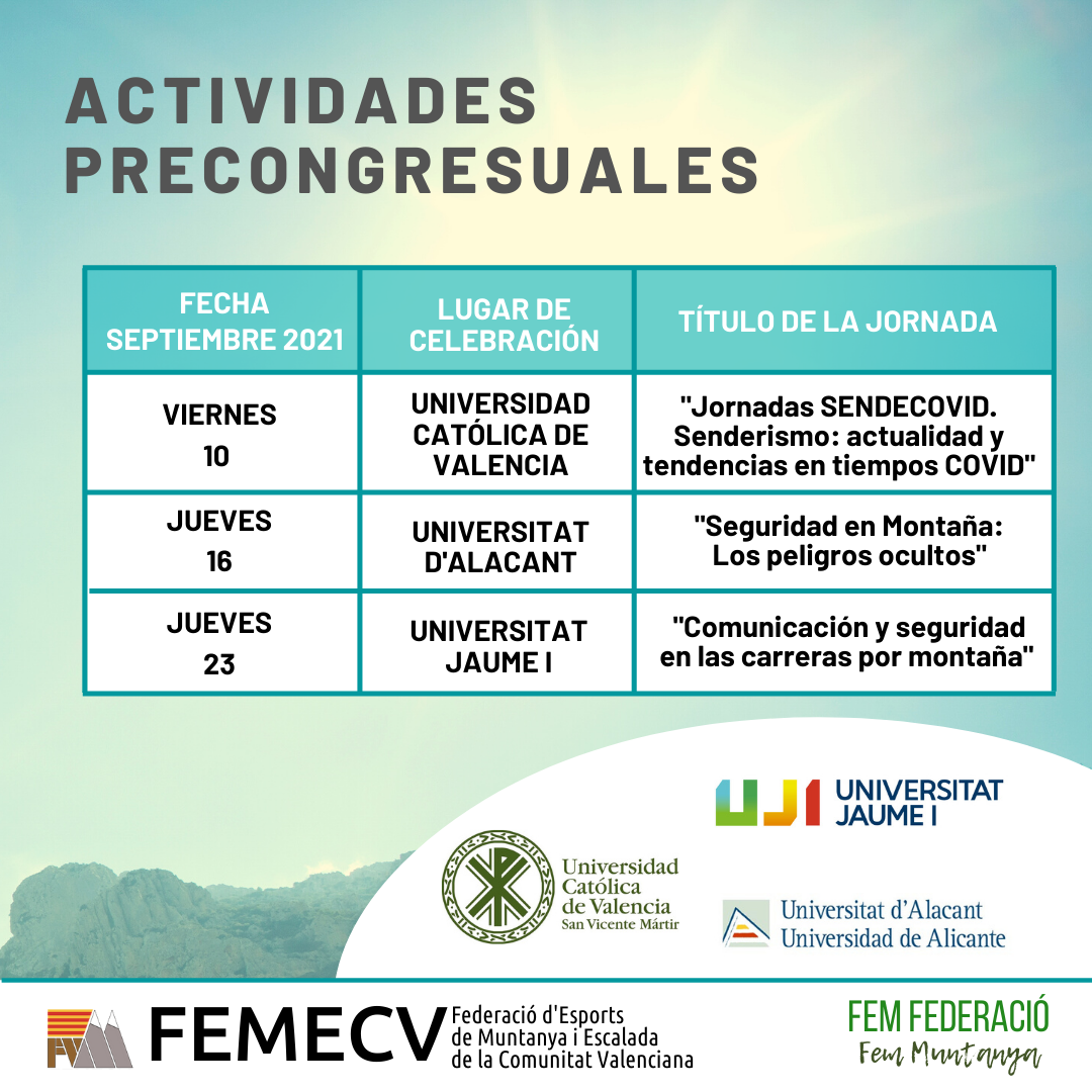 Previo al congreso, se han planificado una serie de actividades en 3 universidades de la Comunidad Valenciana, que servirán como aperitivo al encuentro de Cocentaina.