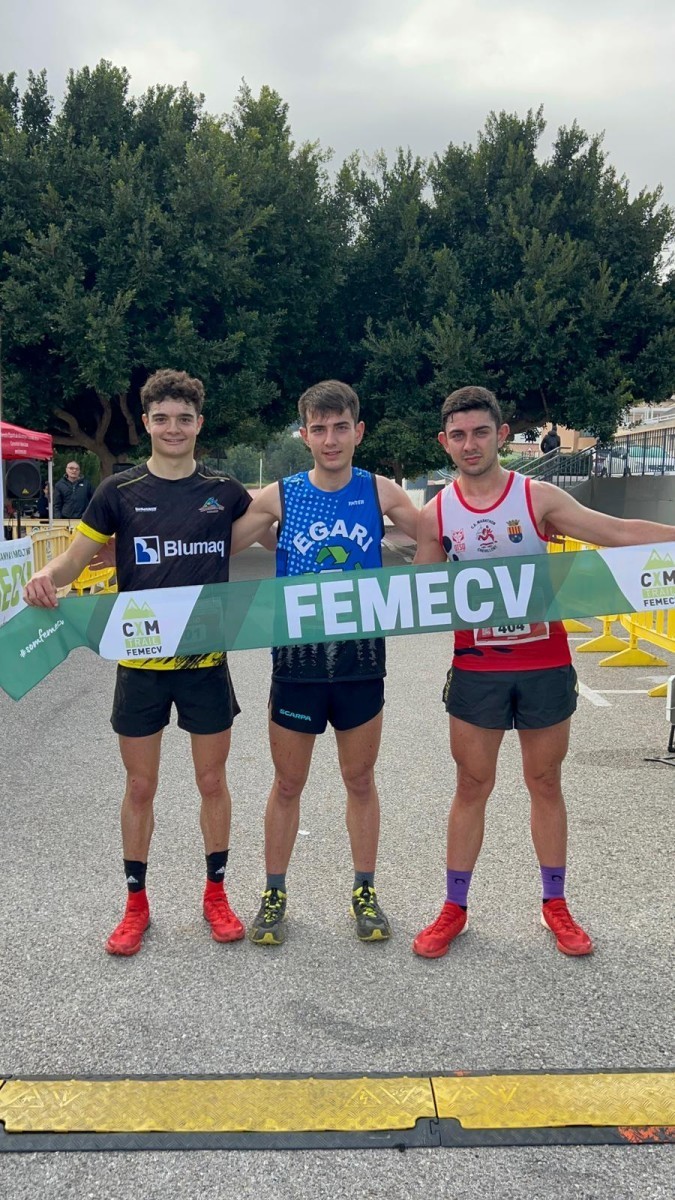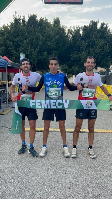 Adil Moussaoui, del EGARI Trail, hizo pódium junto a Sergio Gutiérrez y Emili Sellés, los dos del S.M. Maratón Crevillent, que han entrado en segunda y tercera posición respectivamente.