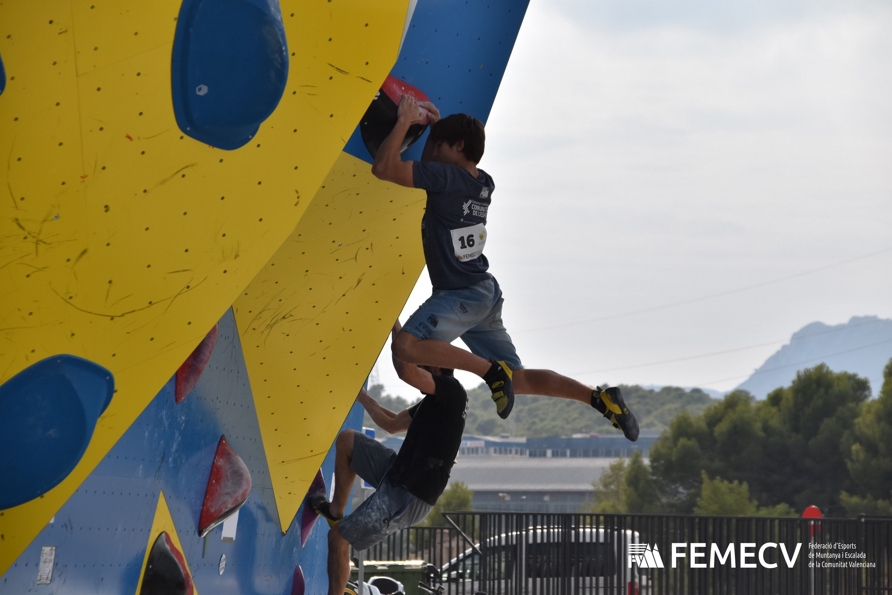 61 escaladores de toda la Comunidad Valenciana compitieron en el nuevo rocódromo de la FEMECV que se ha instalado al exterior, junto al nuevo Pabellón Muixara. La entrada para el público fue libre y gratuita.