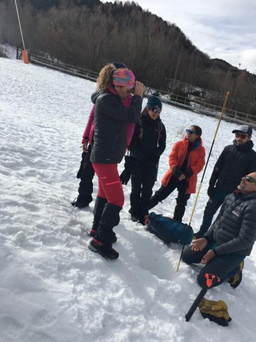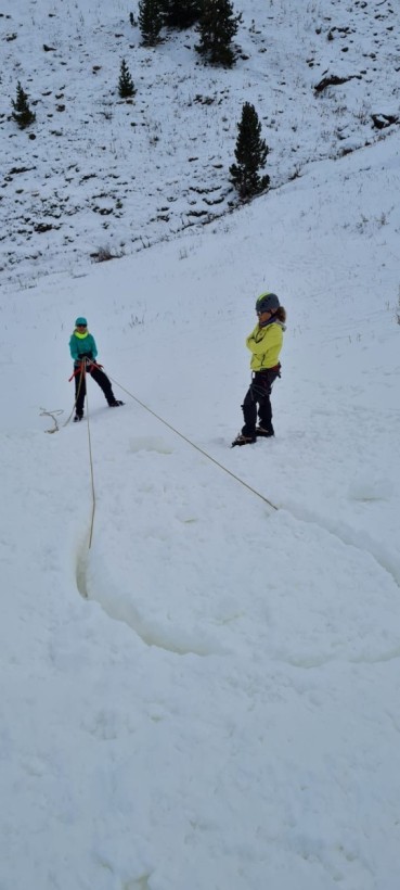 Estuvieron acompañadas por los técnicos Jordi Richart, Javier Palomares y Miguel Anta, que trataron contenidos como nivología y manejo de ARVA, prevención de la hipotermia y construcción de refugios, encordamiento en terreno glacial, progresión con crampones y piolet…