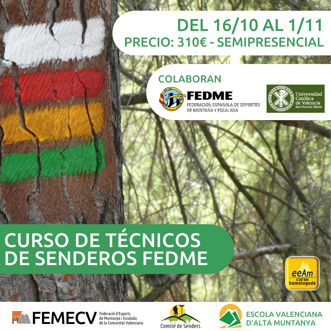 Con el fin de colaborar con Federaciones y Clubs en la homologación y el diseño, ejecución y mantenimiento de redes de senderos señalizados, con las marcas propias de la FEDME de GR ®, PR® y SL®, este curso, pretende formar a las y los futuros Técnicos de Senderos. Su función principal será la de realizar informes de homologación de senderos, aunque también asesorar tanto a instituciones como a empresas que deseen llevar a cabo senderos con las marcas registradas.