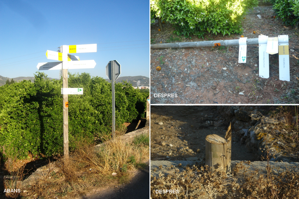 Esperem i demanem que les administracions corresponents es posen mans a l'obra i reposen els senyals el més prompte possible, a l'hora que s'intensifique la vigilància rural per a buscar de detindre el o els delinqüents que han provocat aquest delicte ecològic.