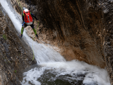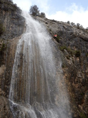 Después de comer, tras confirmar que el barranco del Soler estaba activo, hemos decidido ir hasta Alcoy a realizar su descenso. En él han practicado la gestión de un grupo y su seguridad en barrancos acuáticos con fuerte caudal, cabeceras desembragables y rapeles guiados, además se ha practicado diferentes tipos de aseguramientos y técnicas de progresión en barrancos con caudal fuerte y una introducción a las aguas vivas.