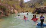 Comenzamos tomar el primer contacto con el agua hacia las 10:30, realizado esta ruta por el recorrido fluvial de las aguas cristalinas de dicho río , en el trayecto íbamos atravesando zonas nadando y en otras el agua no subía mas de los tobillos. En varias zonas nos entretuvimos para disfrutar de saltos en las diversas pozas en la que la altura oscilaba entre 2 y 7 metros de altura.