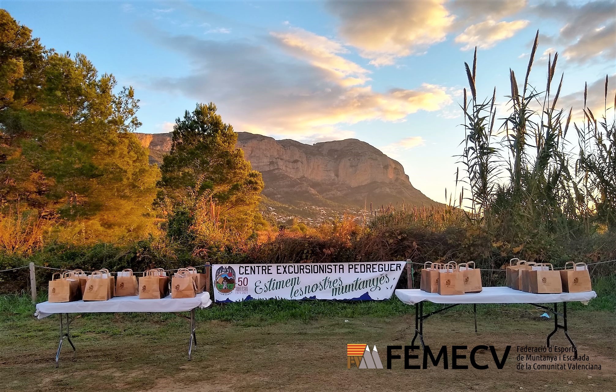 La actividad estuvo bien guiada por los voluntarios del Centre Excursionista de Pedreguer a quienes se les agradeció por parte del Presidente de la FEMECV y del Coordinador del Programa, su estupenda labor que ha permitido poder efectuar esta ruta con total organización, control y seguridad. Continuando con la tradición de estos eventos, al final del recorrido se hizo entrega de un obsequio a los senderistas que han participado en todas las rutas.