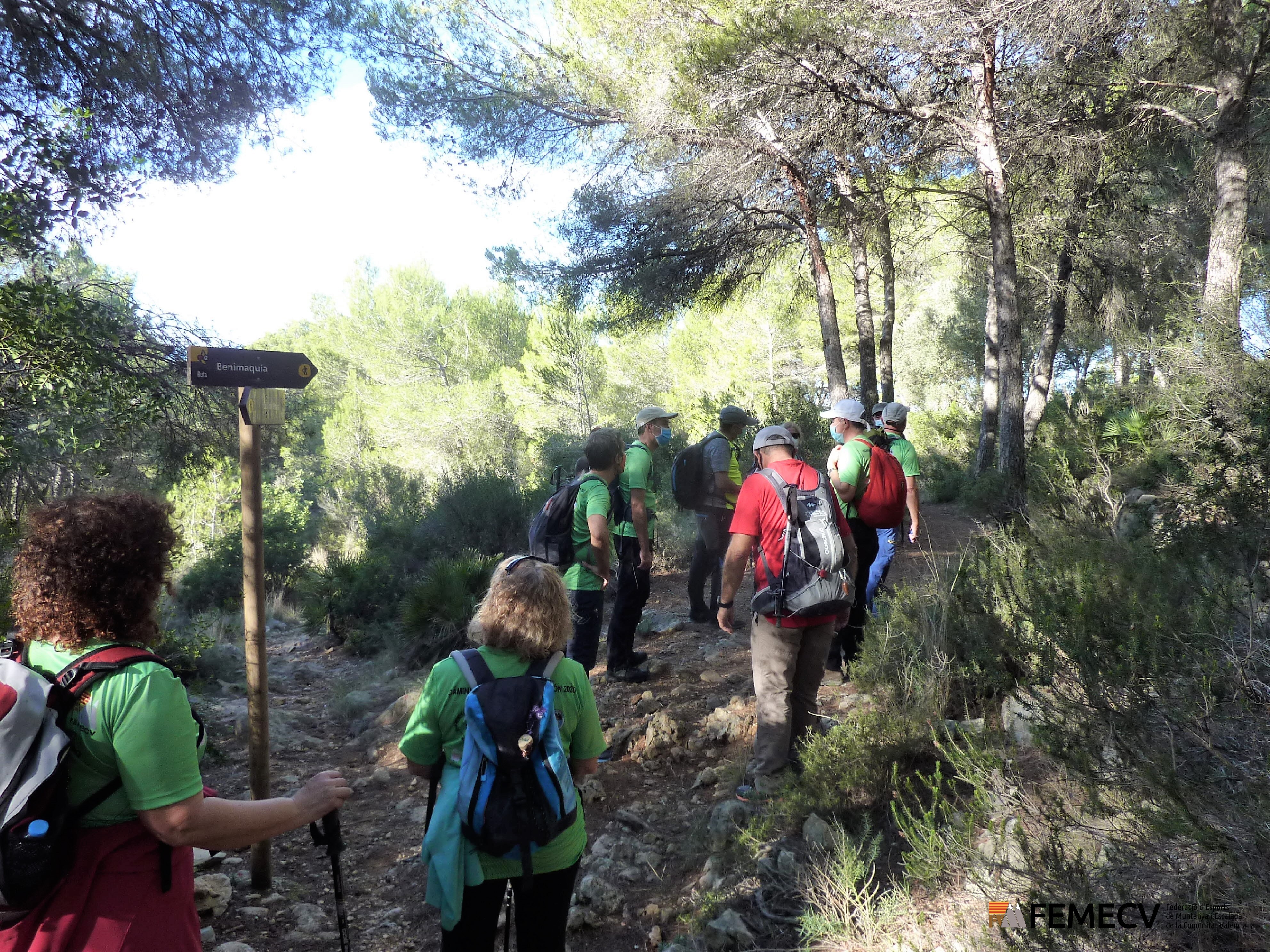 La actividad partió de Jesús Pobre simultaneando diversos caminos y sendas rurales con encanto dentro del privilegiado espacio del Parque Natural del Montgó, en dirección a una zona muy interesante no sólo desde el punto de vista medioambiental sino también patrimonial: el Alto de Benimaquia. En este paraje se encuentra un importante yacimiento arqueológico íbero del siglo VI a.C. donde se encuentra la primera bodega de la península ibérica, estando considerada como la más antigua de Europa Occidental. Tras recrearnos en la zona se llegó al Coll de Pous y se inició el descenso hasta el punto de partida.