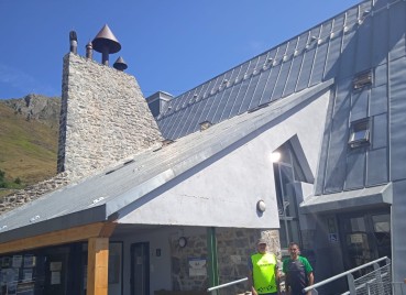 Durante la visita se pudieron conocer los nuevos materiales y equipamientos utilizados en este nuevo refugio de alta montaña situado a 1430 m de altitud, especialmente todo lo relacionado con uso de energías (placas solares, gas, calefacción con recursos naturales...), así como los sistemas de aguas residuales, en seco y filtros y sistemas de consumo energético. El nuevo edificio dispone de 56 plazas en habitaciones de 4 con wc y duchas, así como una cocina perfectamente equipada para dar comidas, donde se cuida el consumo responsable y el reciclado.