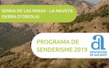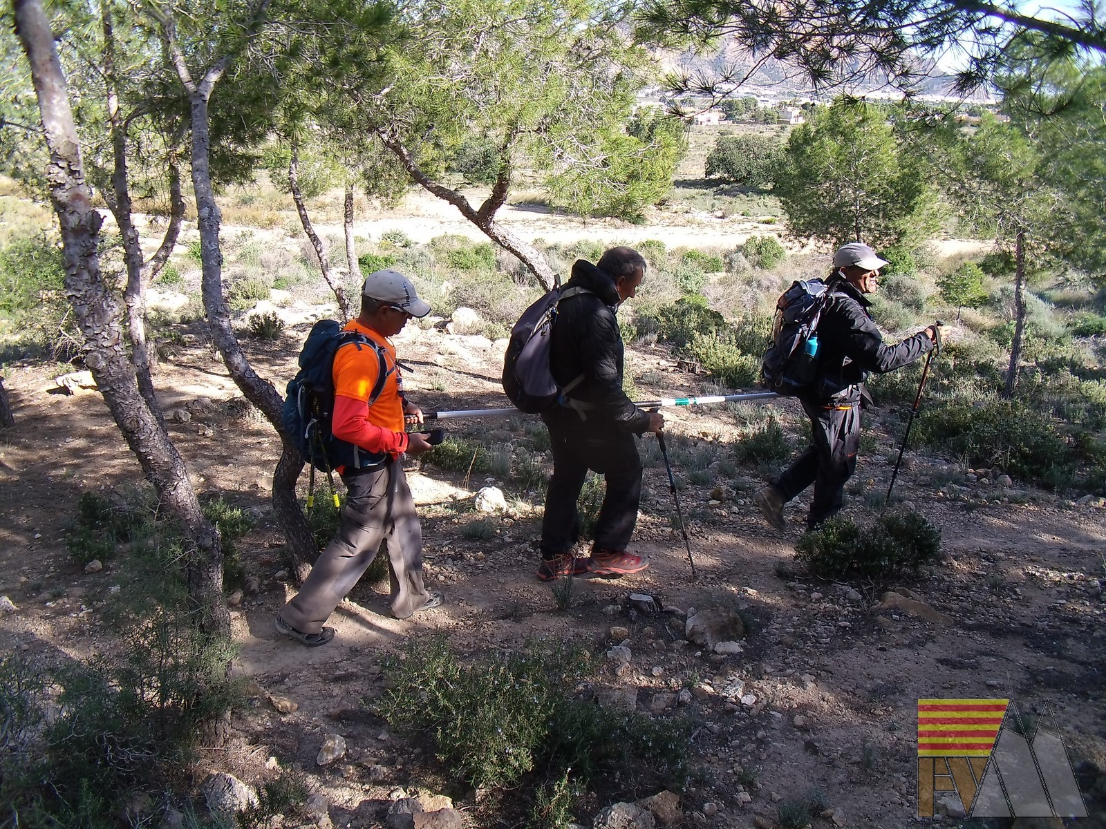 Se pasó por la ermita de Nuestra Sra. del Pilar hasta llegar a la variante de la Senda de las Minas, recorriendo diversas bocaminas, vestigios de la antigua actividad minera de la sierra de Orihuela. Después en el cordal de la sierra se enlazó con el PR-CV 59 para seguir en dirección W, disfrutando de unas estupendas vistas a ambos lados de la sierra. Finalmente se llegó al collado de La Naveta, descendiendo después por el barranco de las Sendas para llegar al punto de inicio.