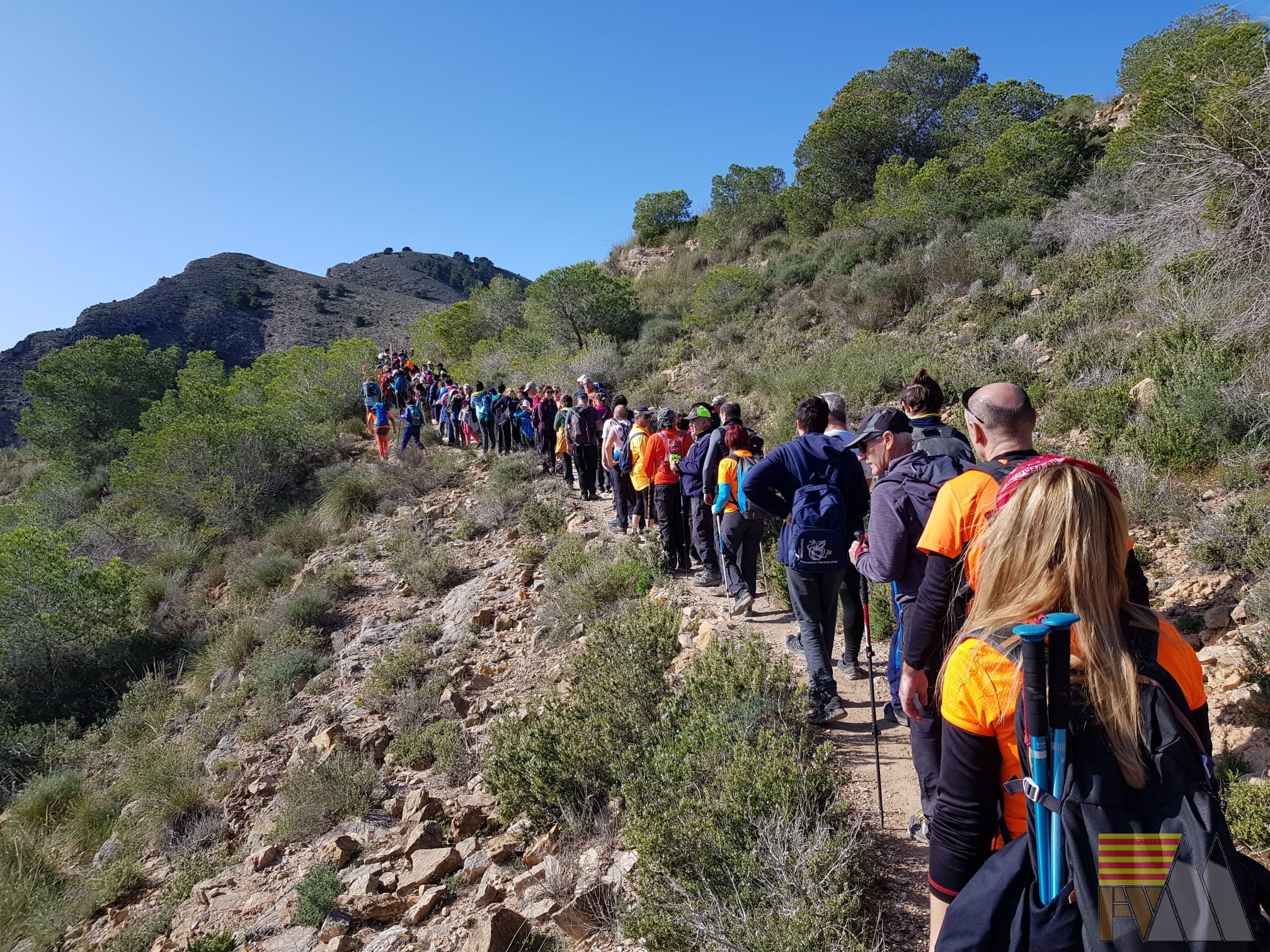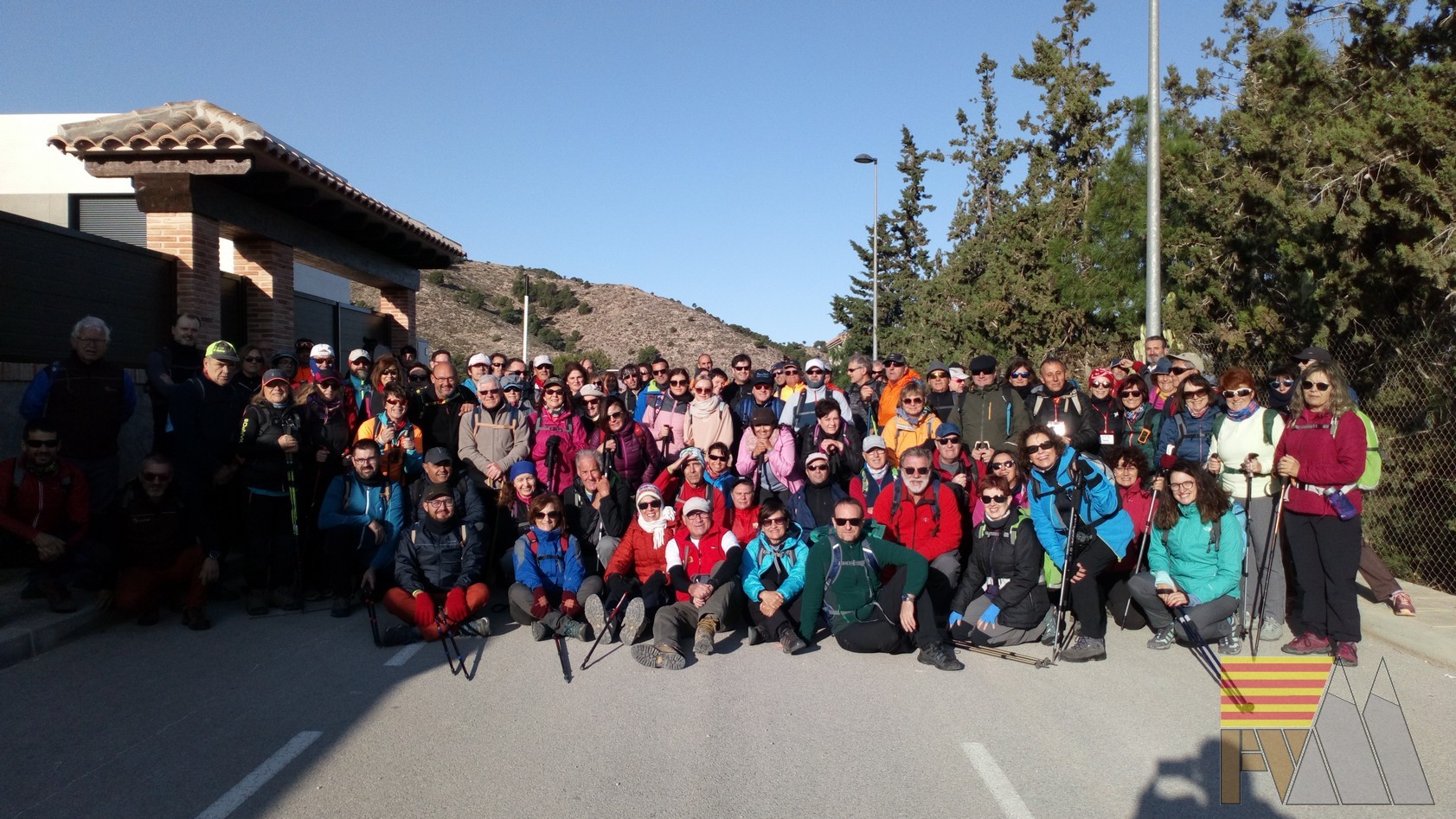 Con una magnífica afluencia de senderistas: más de 100 participantes, se inició el recorrido desde la urbanización Montepinar, en un día muy ventoso lo que acrecentó la sensación térmica de frío, aunque en toda la jornada hubo un sol radiante. Además, se contó con la participación de un discapacitado visual, que, con la técnica de la barra direccional, fue un participante más, en una clara apuesta por el deporte inclusivo que tanto la FEMECV como el Grupo Oriolano de Montañismo quieren impulsar.